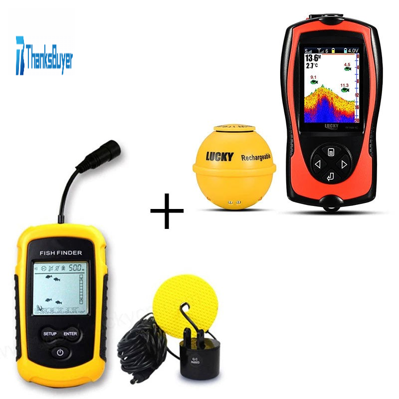 FF1108-1CWLA 60M/196.9FT Wireless Fish Finder + FF1108-1 Wired Fish Finder Black & White Display