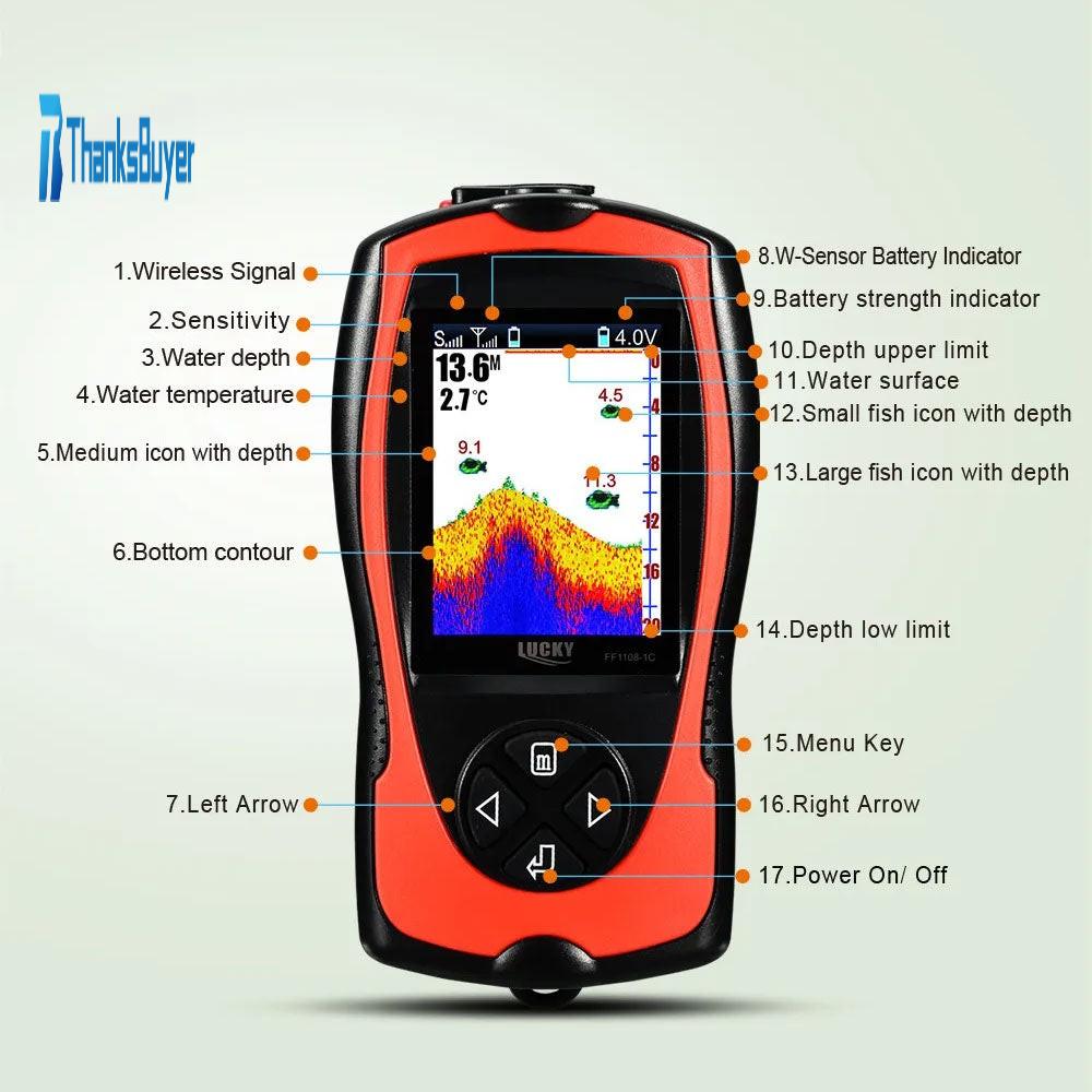 - If wireless sensor is not put into water, it will switch to resting state automatically and sonar will stop working. Only after put into water, it will work.