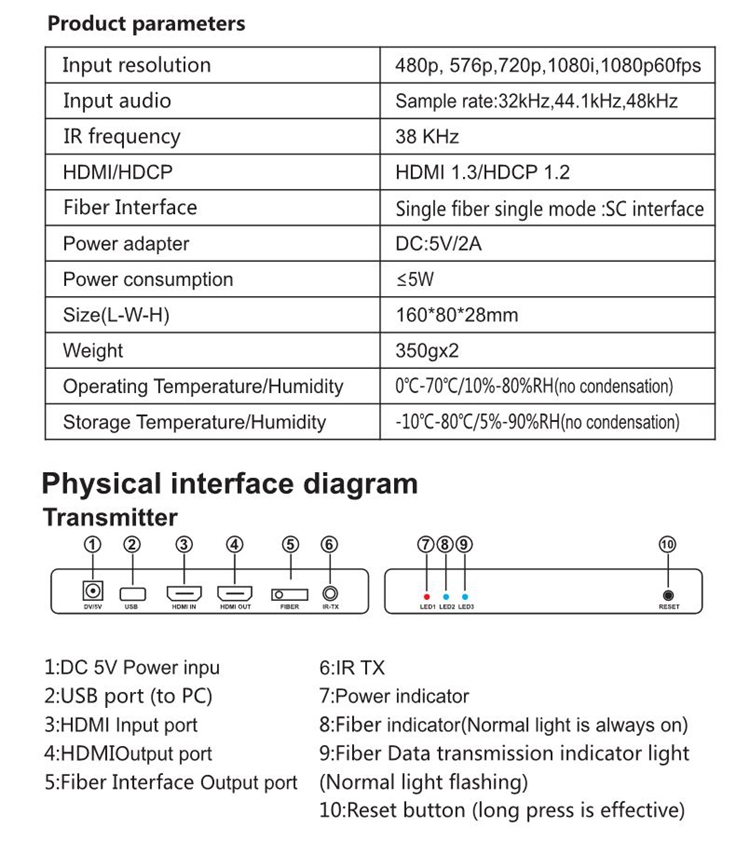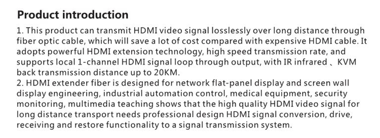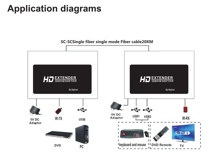 Fiber Optic HDMI Extender KVM 20KM Over TCP/IP By Optical Support 1080P EC20KM-K