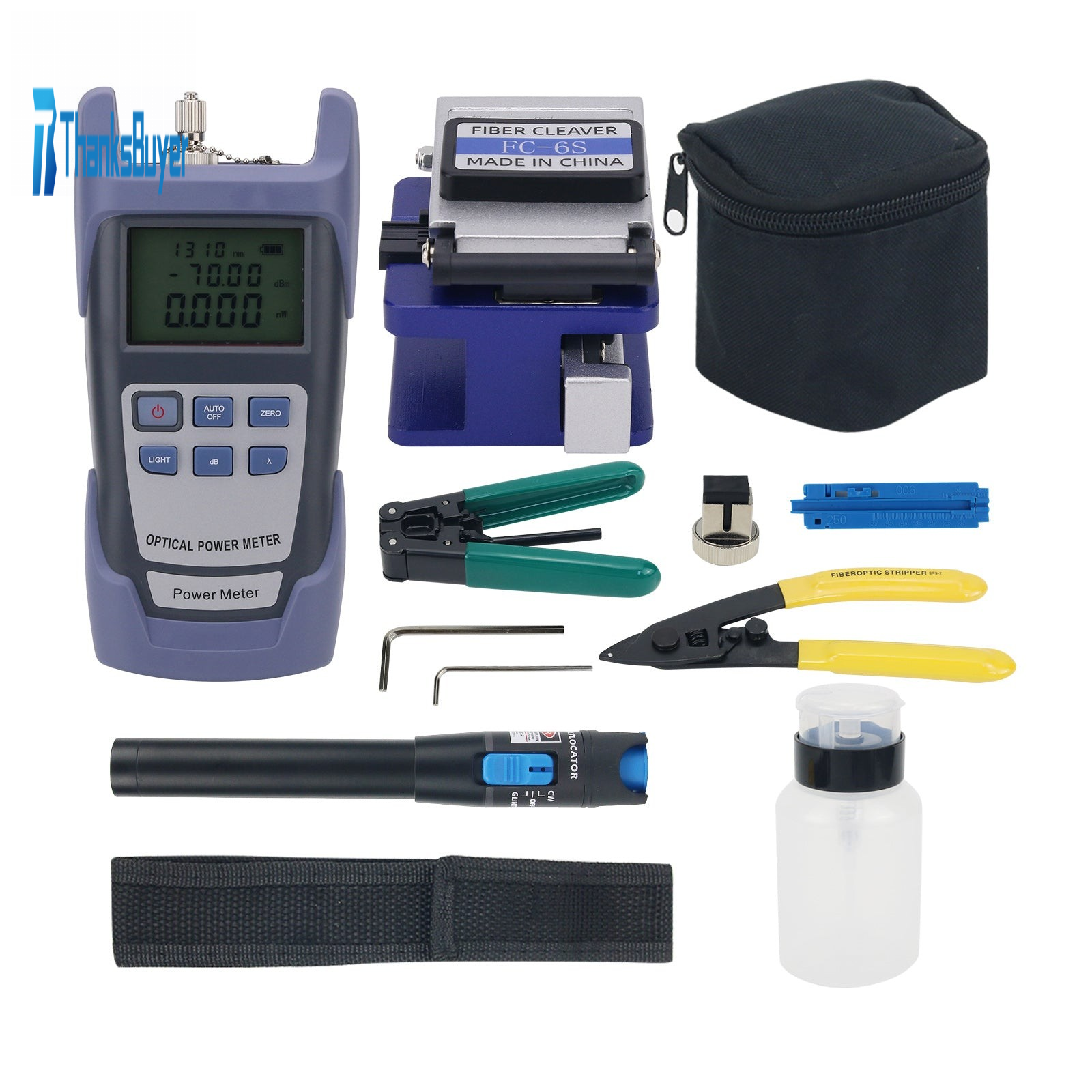 Fiber Optic Tool Kit FTTH Fiber Splicing Tools w/ Fiber Cleaver Power Meter 5KM Visual Fault Locator