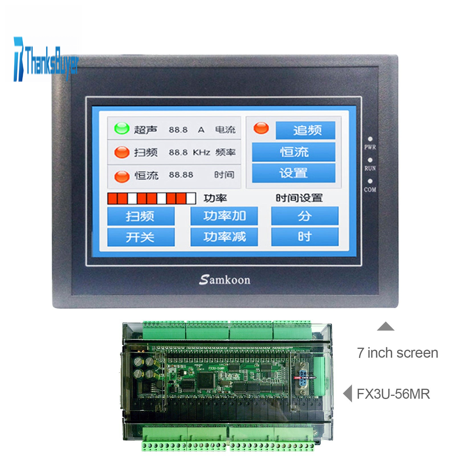 For Samkoon EA-070B 7" HMI Touch Screen 800*480 + FX3U-56MR PLC Industrial Controller Board