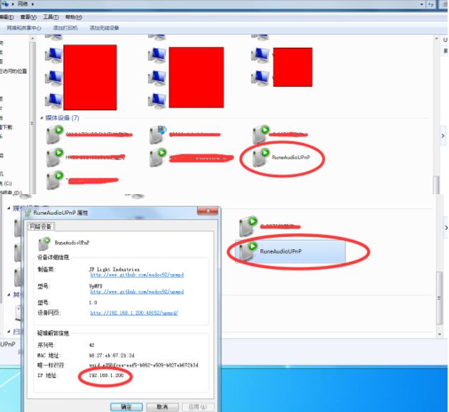 Wait a moment and open My Network Places to find a media play image for "RuneaudioXXX". Right-click the property to view the IP address, and then use the web page to enter the IP login.
