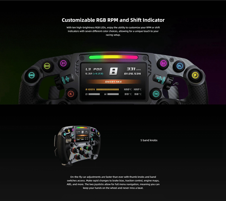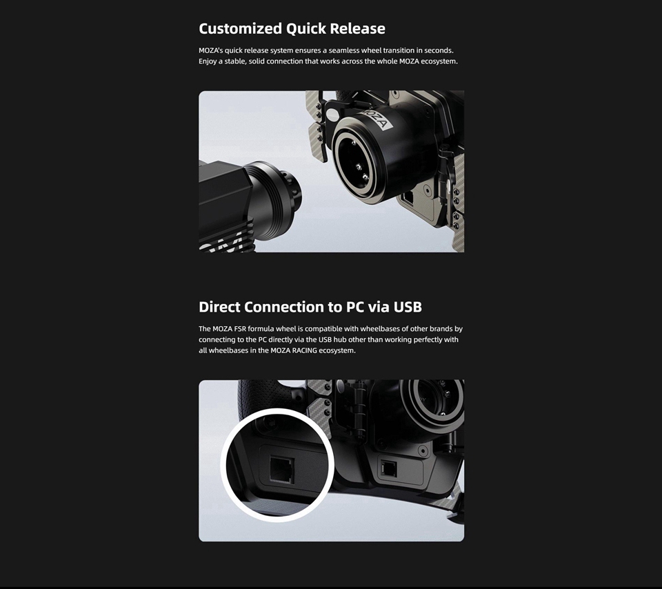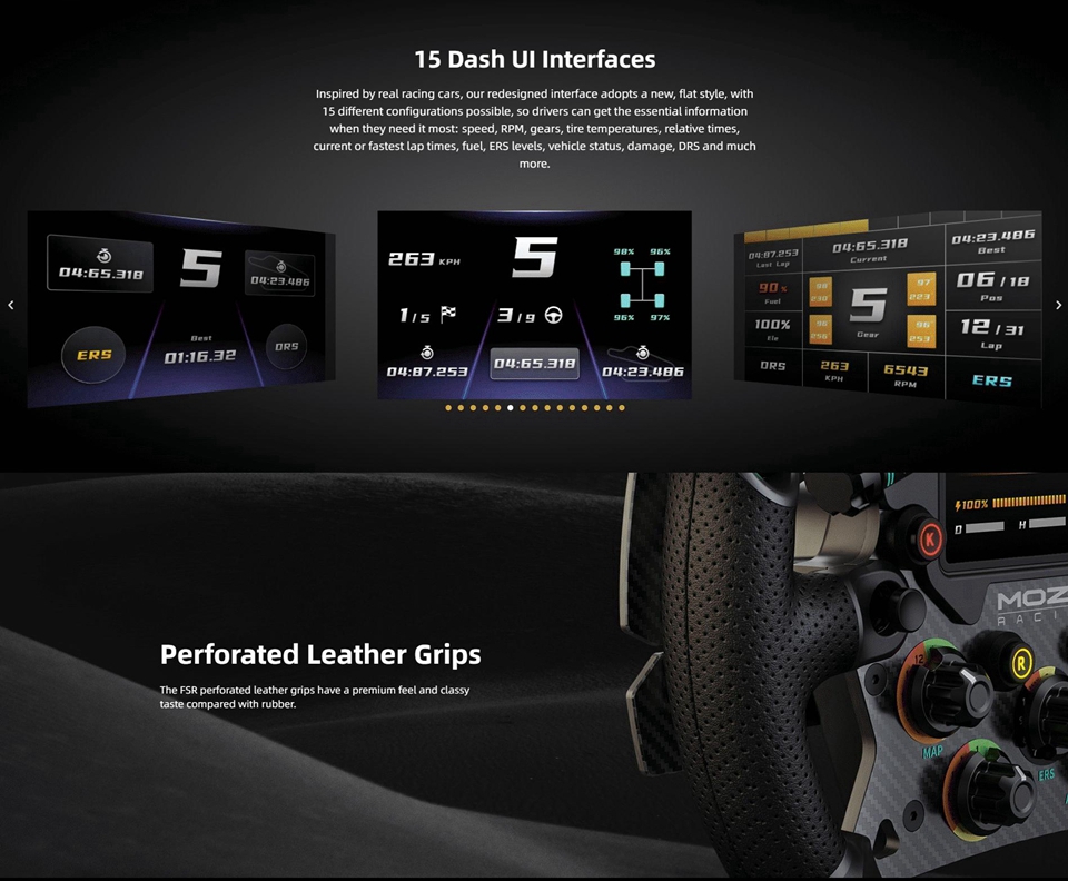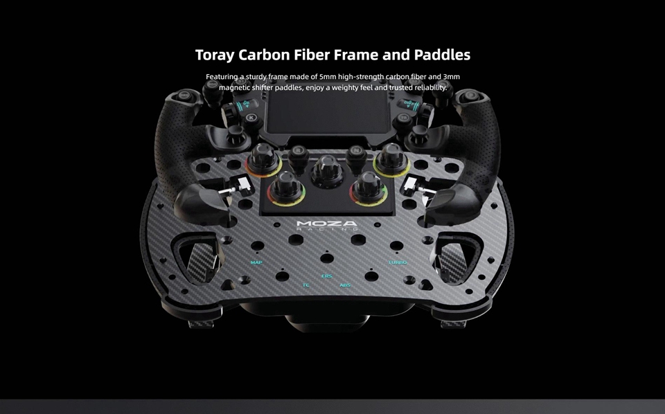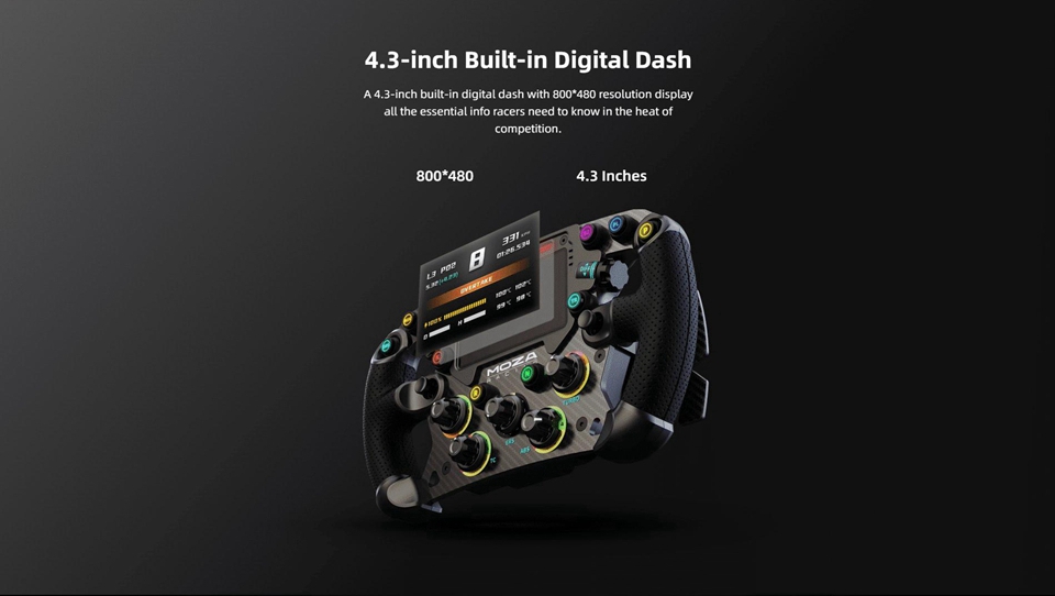 - FSR sets the bar for excellence. Immerse yourself in unparalleled luxury with perforated leather grips for ultimate comfort and grip. For Toray carbon fiber construction ensures lightweight durability and a striking aesthetic. Experience lightning-fast gear changes with the magnetic dual clutch paddles. Maintain full control over your race with the 4.3-inch built-in digital dash, providing real-time racing data at your fingertips. Enjoy seamless transitions with the customized Quick-Release from Real Racing and customize your experience further with customizable RGB RPM and shift indicators, adding a vibrant touch to your setup.