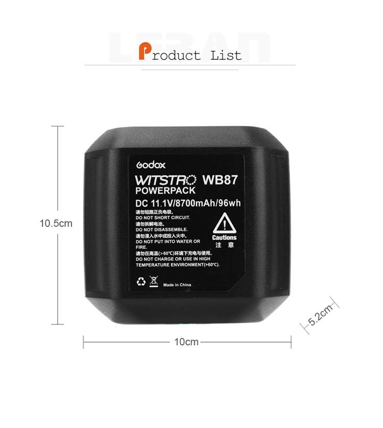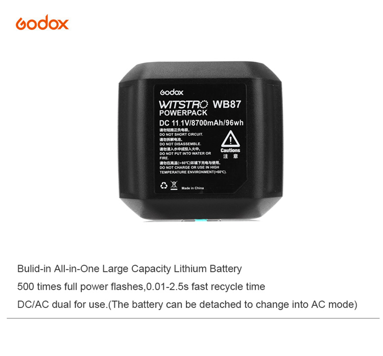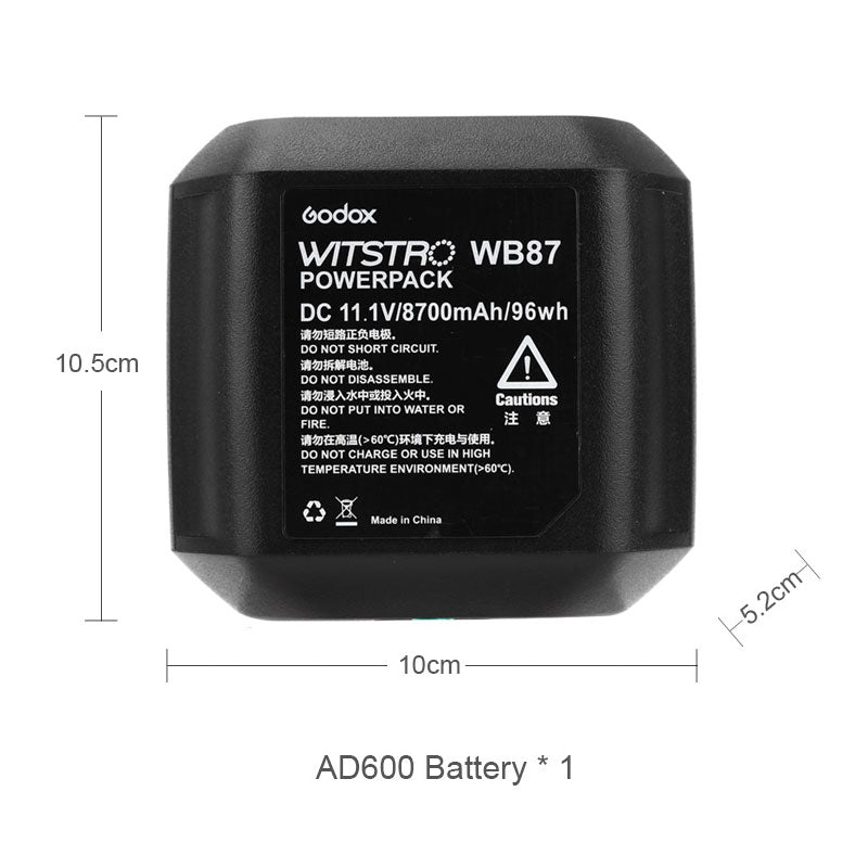 Godox WITSTRO WB87 (WB-87) Battery Pack 11.1V 8700Mah For AD600 AD600B AD600BM AD600M Flashes