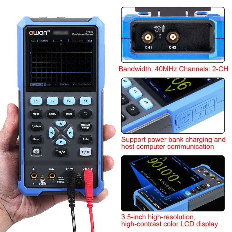 HD242S 40MHz Handheld Digital Oscilloscope Multimeter 3.5-inch LCD Display Signal Source for OWON HDS200 Series