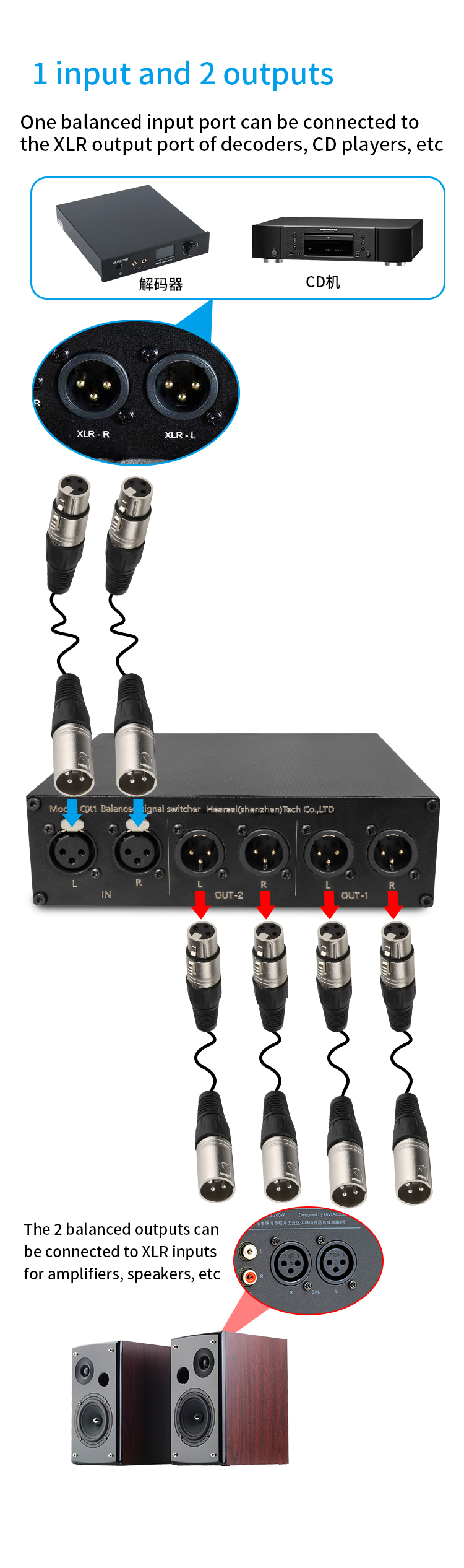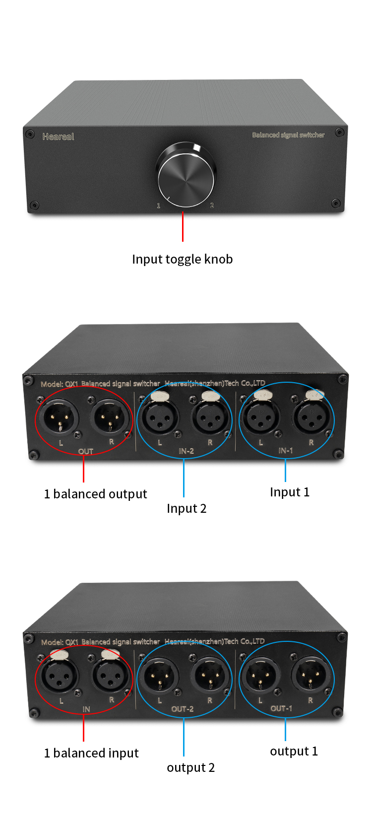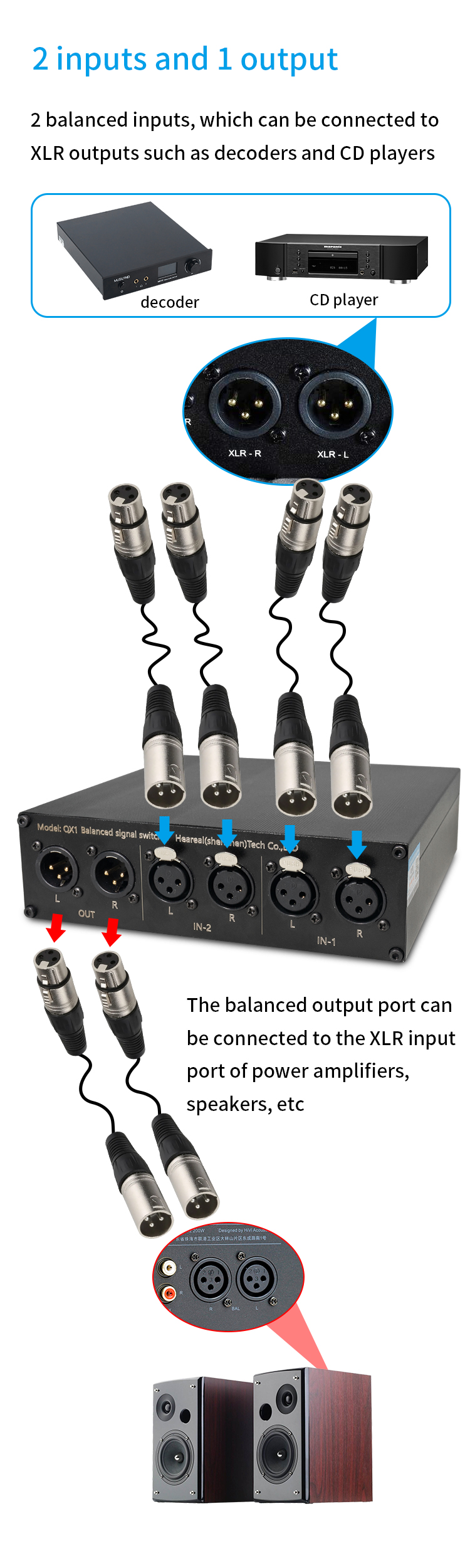 Heareal QX1 2 IN 1 OUT XLR Audio Switcher HiFi Passive Full Lossless Balanced Signal Switcher