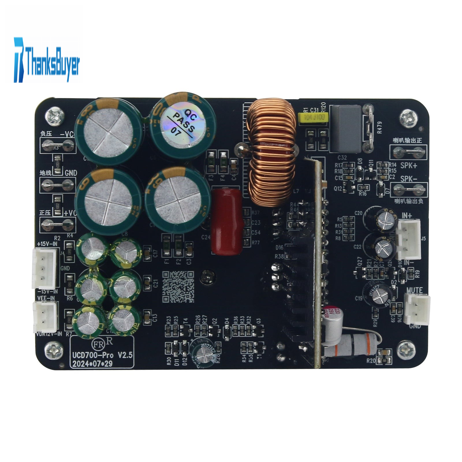 - UCD700 power amplifier board, UCD fully discrete component power amplifier board with small size and high power, frequency response of 10-35KHz, dual power supply +/-35 - 85V, (maximum voltage cannot exceed 92V) +/- 15V, independent 12V (VDR12V) rated output power of 4ohms 700W, 8ohms 380W.