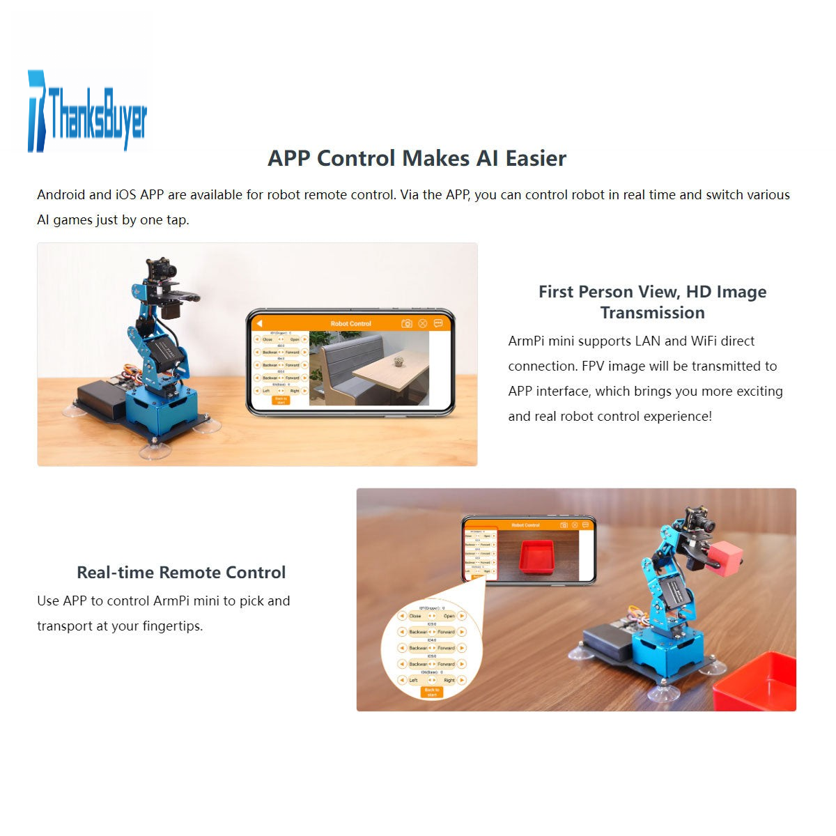 ArmPi mini supports LAN and WiFi direct connection. FPV image will be transmitted to APP interface, which brings you more exciting and real robot control experience!