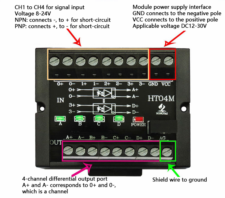 HT04M Terminal Block 4Ch Collector Single Ended To Differential Module HTL/TTL To Differential Black