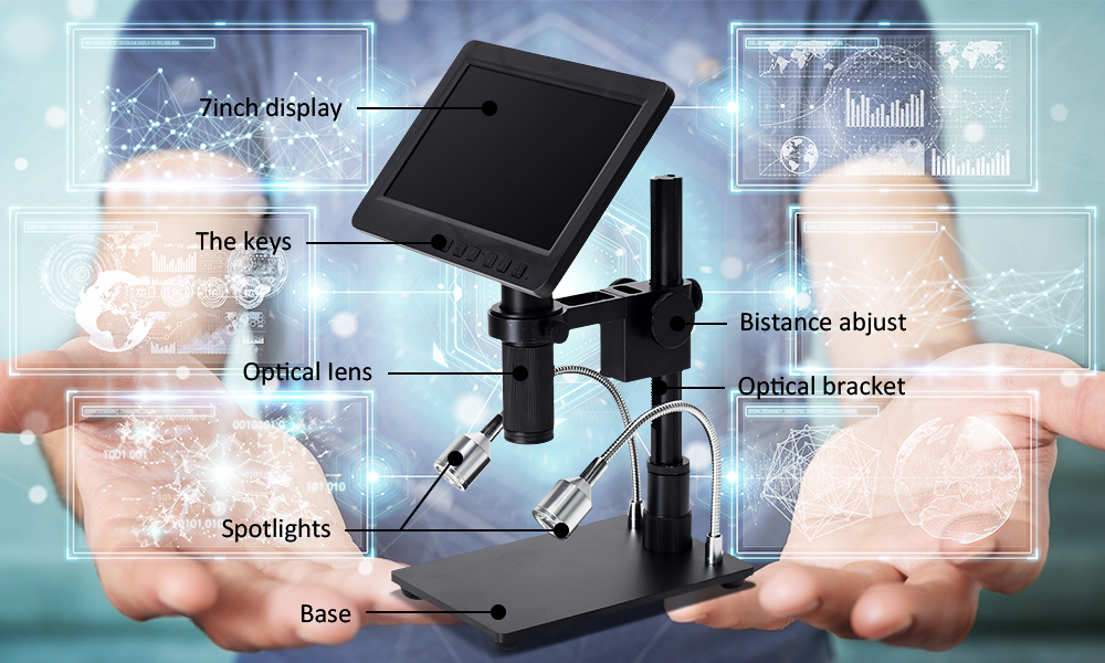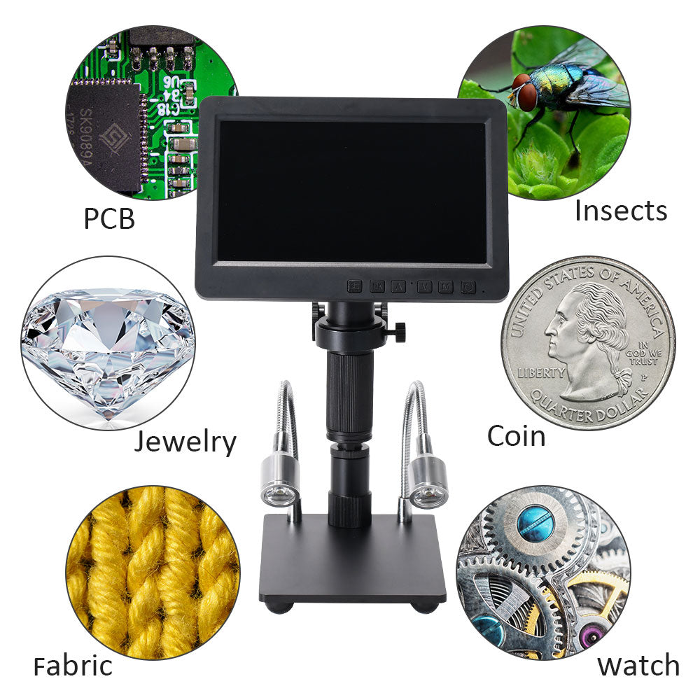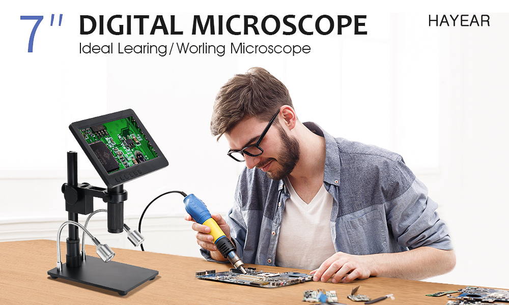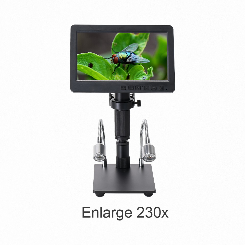 HY-2070 Digital Microscope 7-inch 1080P Electronics Soldering Microscope with Adjustable Stand Support 300X Magnification