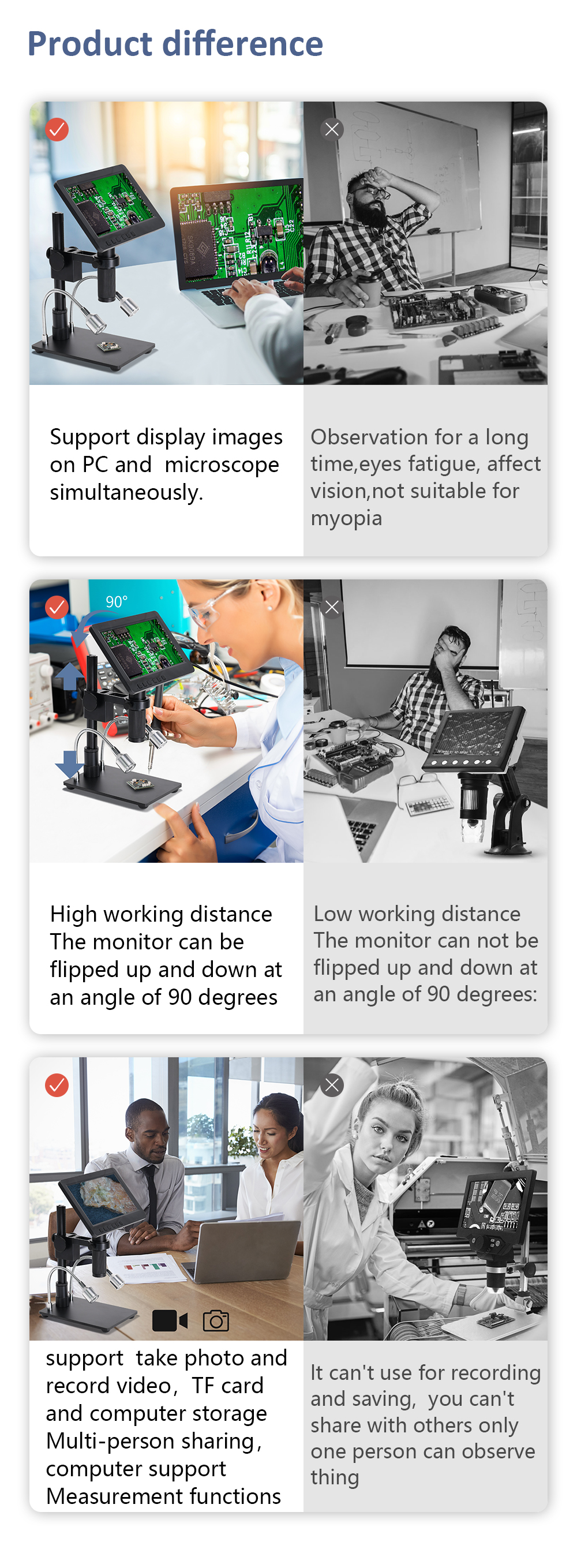 - 50mm ~ 350mm wider operating distance: easy to use tweezers, electric soldering iron and others under this microscope.
