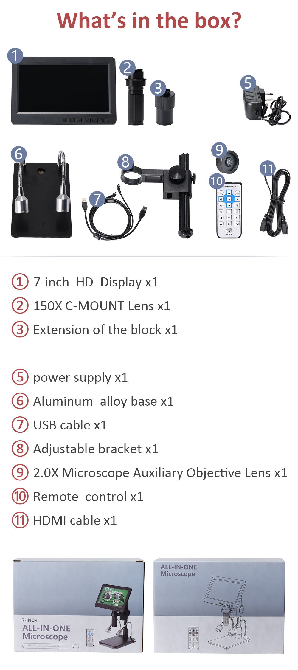 - 1 x 150X C-MOUNT Lens