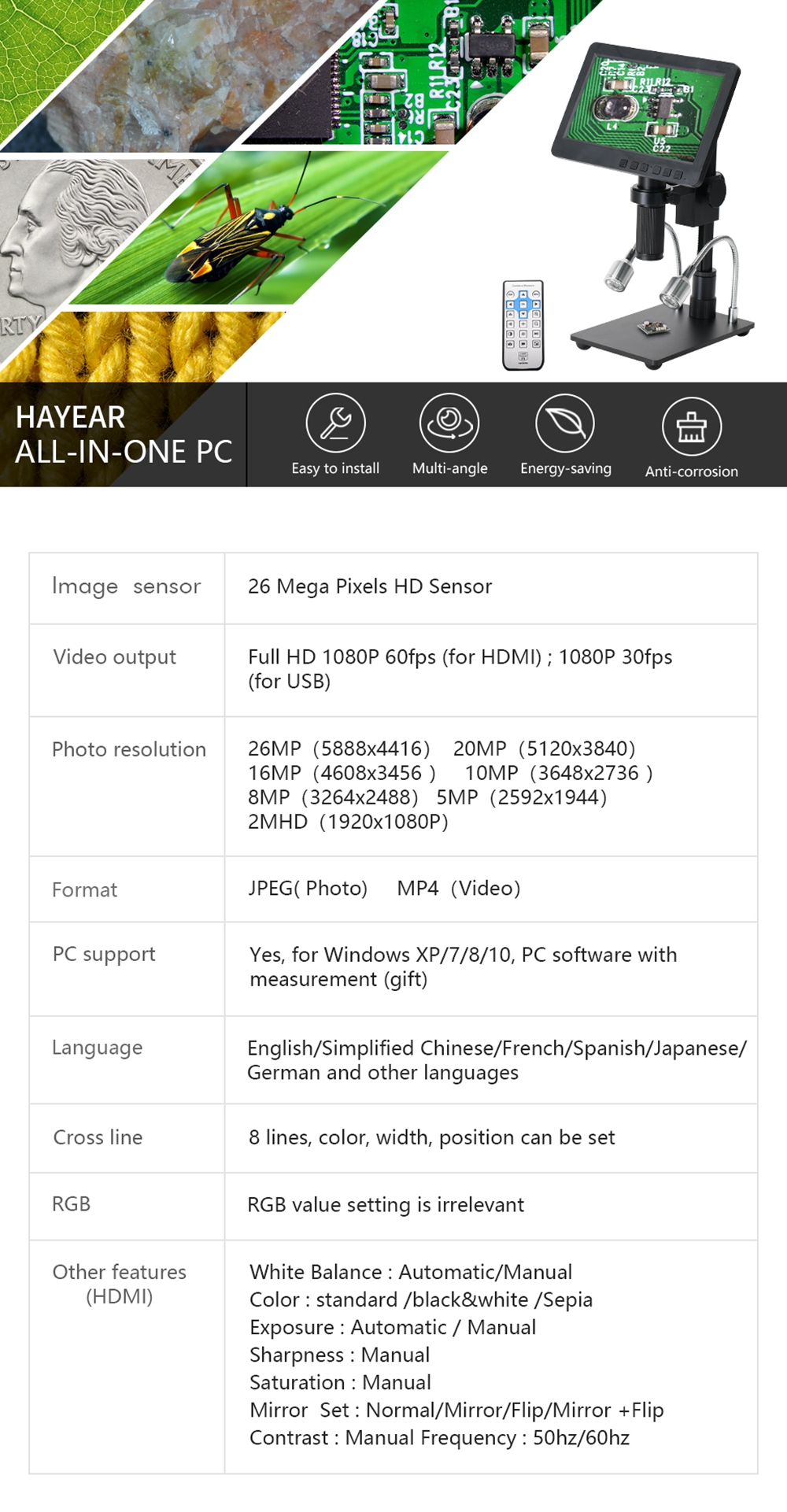 - Equipped with 26 million pixel CMOS image sensor, HDMI 1080P 60 frames per second high-definition image output, no delay and no smear (compared to other microscopes on the market, most of them are 30 frames).