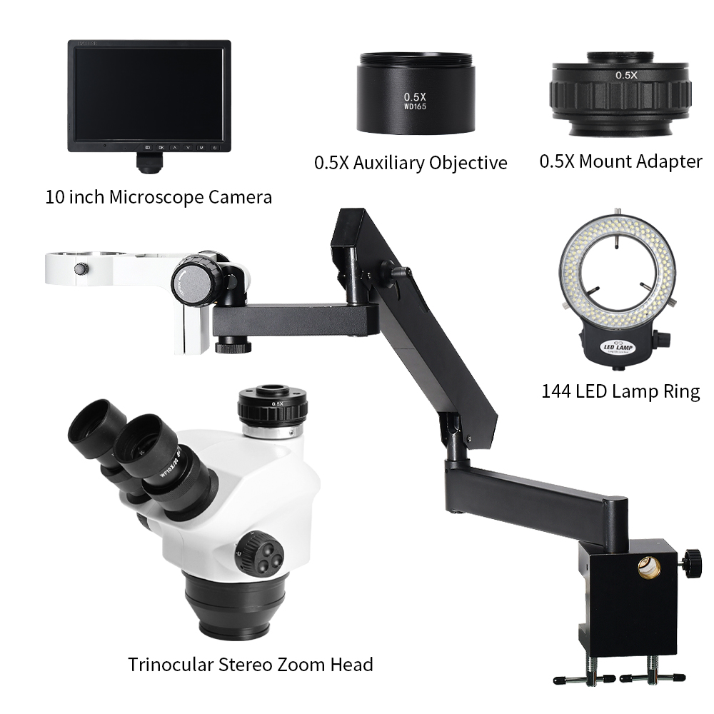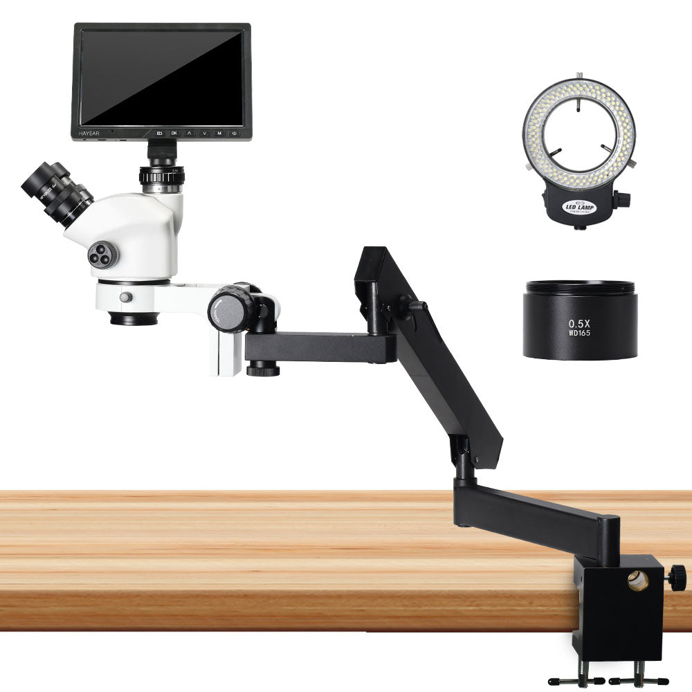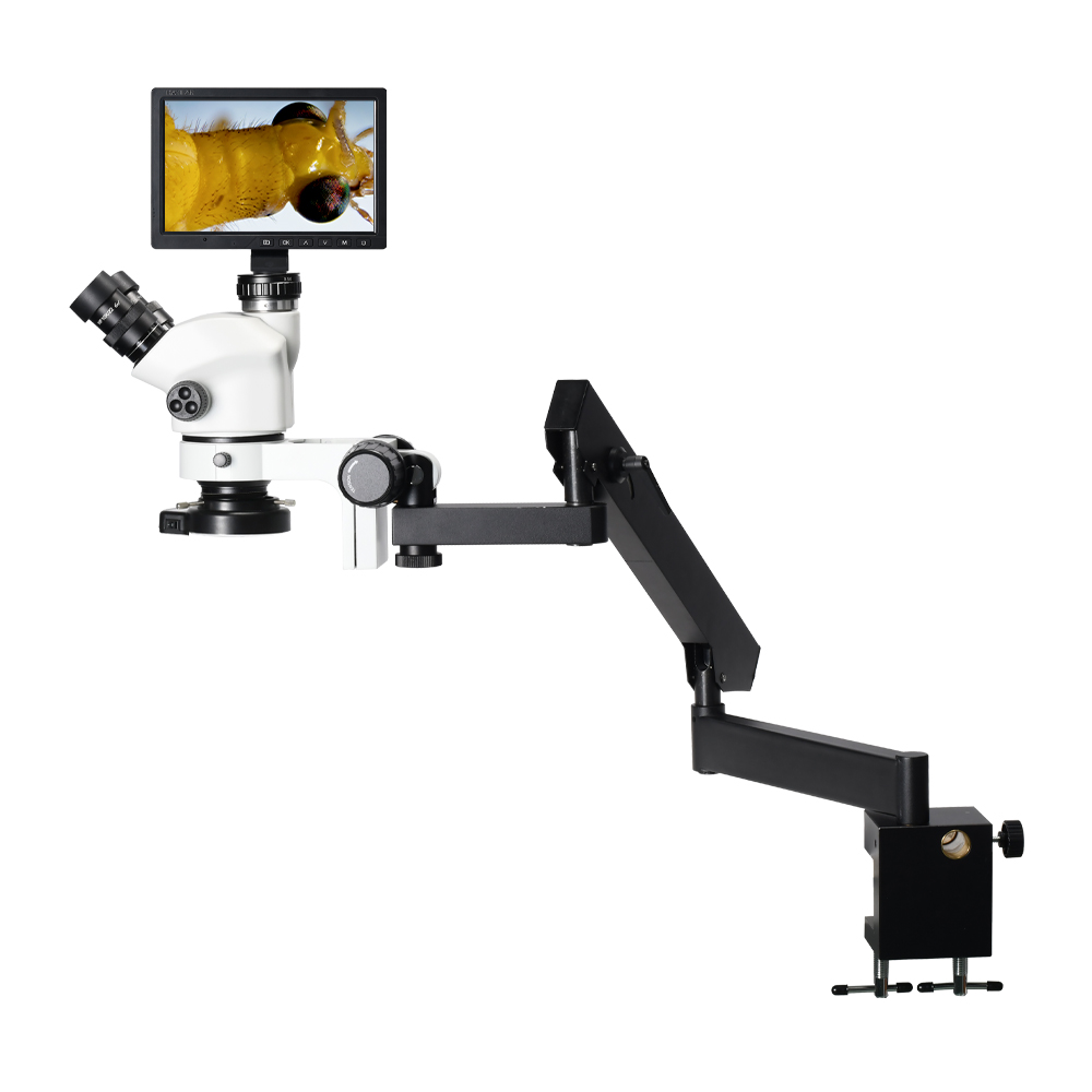 HY-7050FLA-1090 3.5X-50X Zoom Stereo Trinocular Microscope Clamp Folding Extension Base with 10-inch Microscope Camera