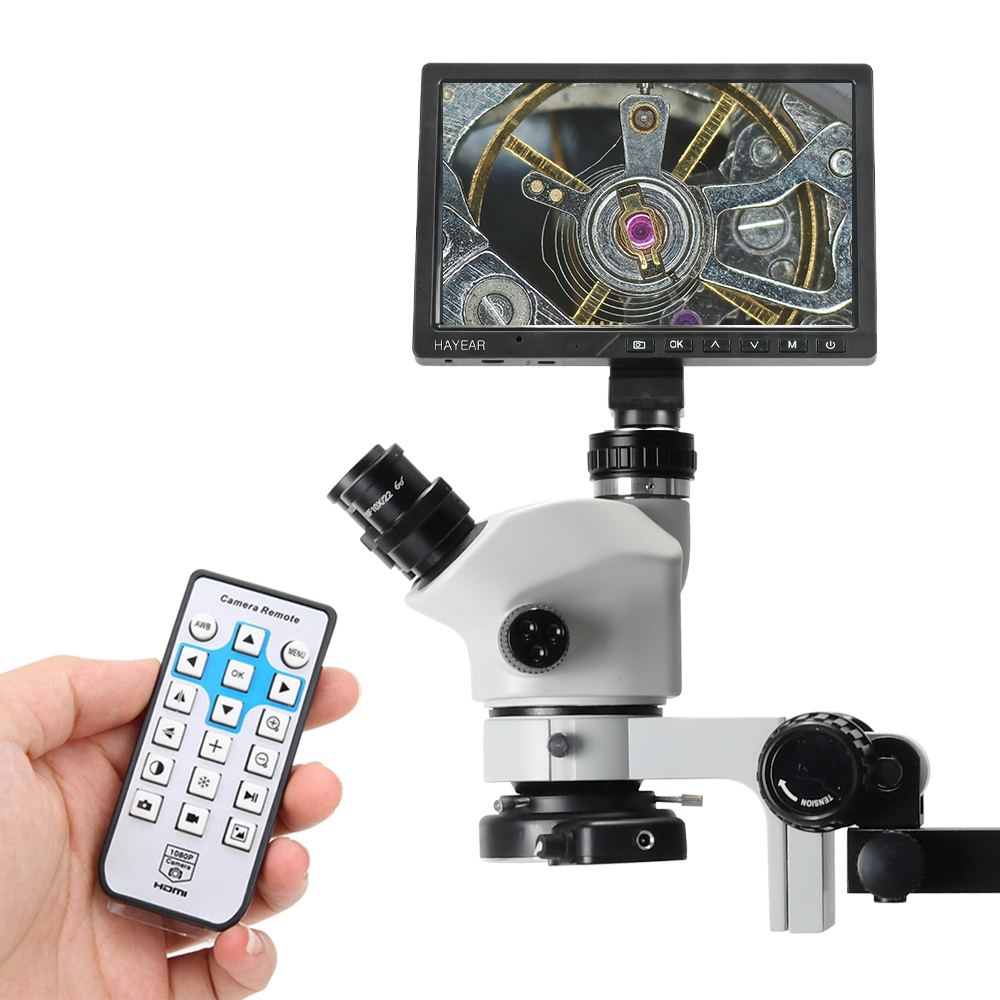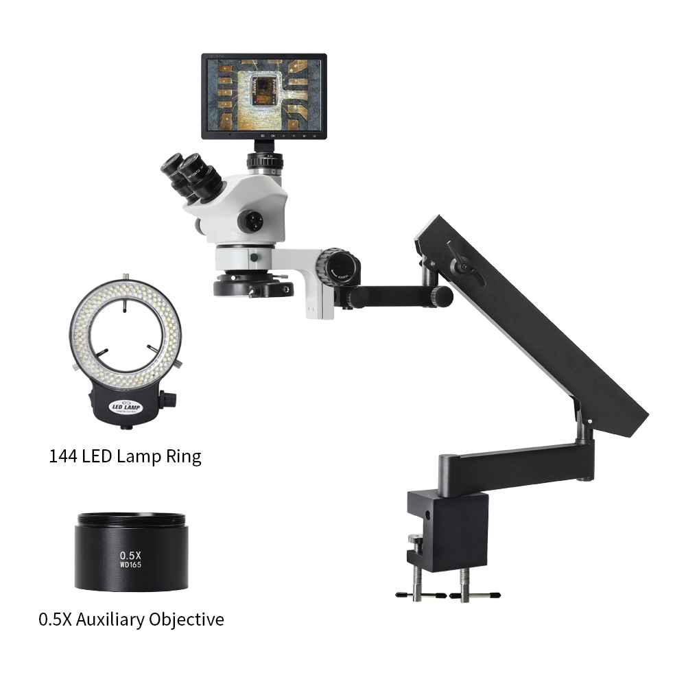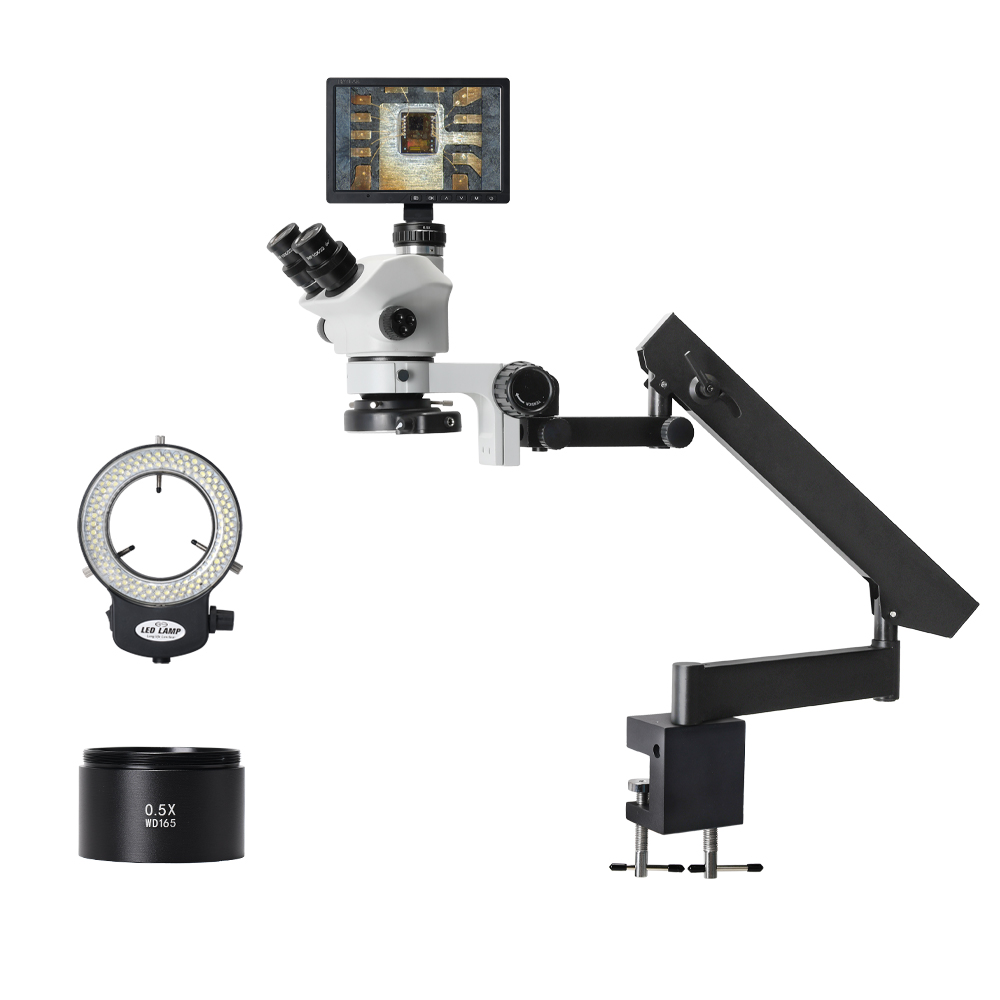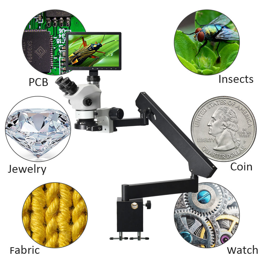 HY-7050FLA-1090 3.5X-50X Zoom Stereo Trinocular Microscope Clamp Folding Extension Base with 10-inch Microscope Camera