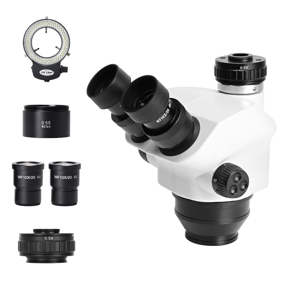 - An excellent stereo inspection microscope with intensity-adjustable 144-LED ring light