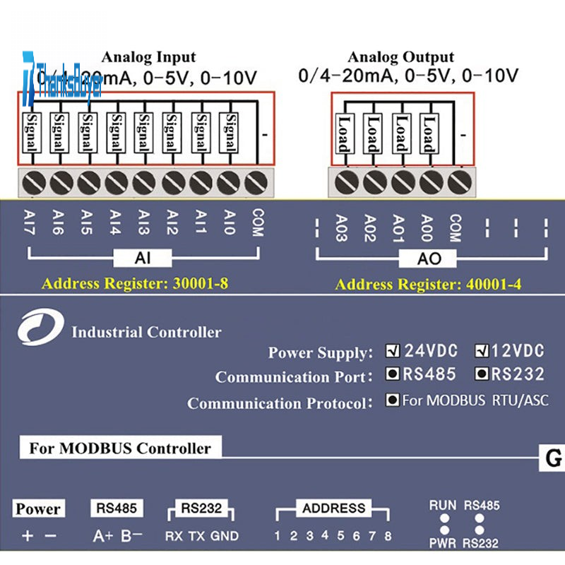 Industrial Control For Modbus RTU Siemens Mitsubishi PLC RTU-307A 8AI 4AO 0-20mA/4-20mA (RS485+RS232)