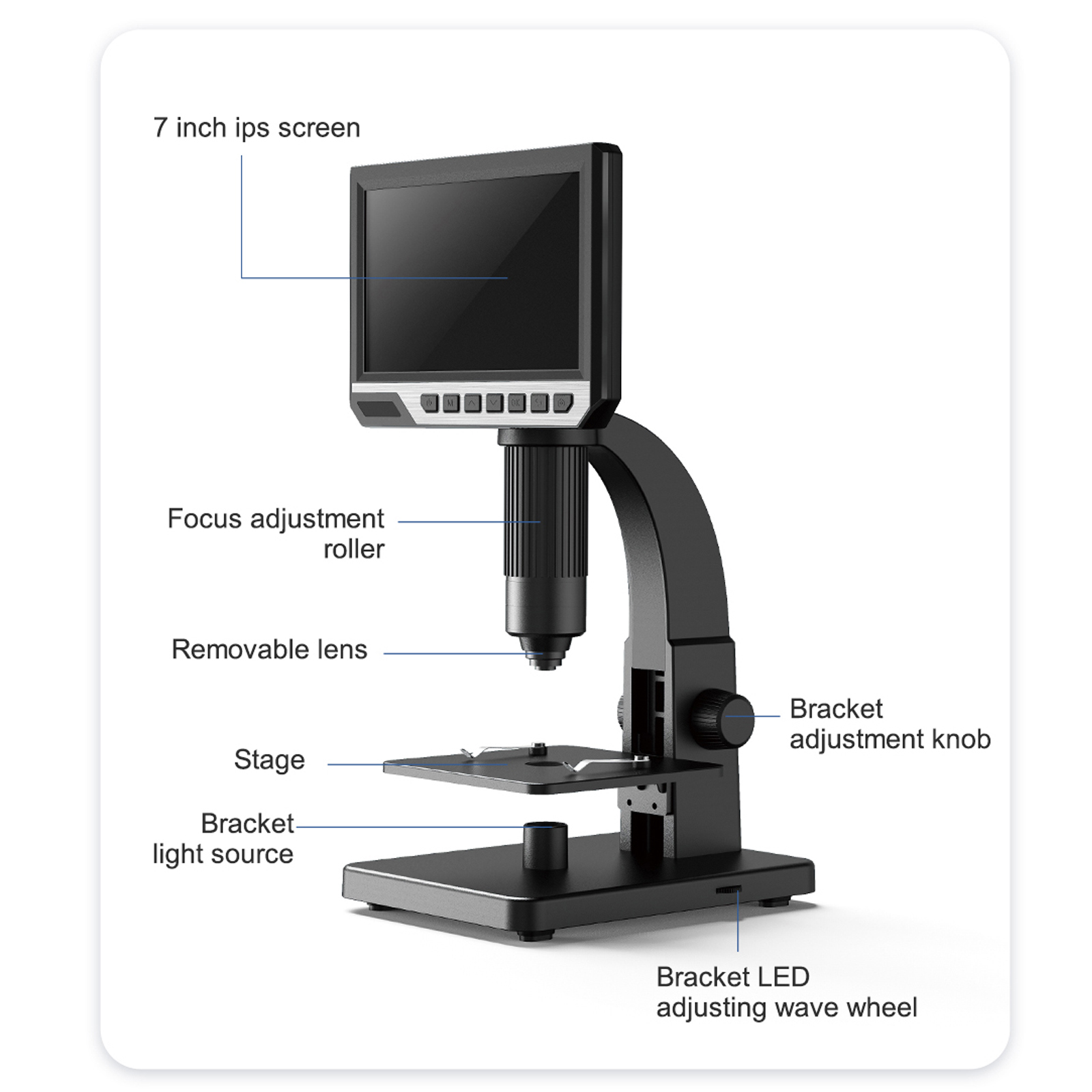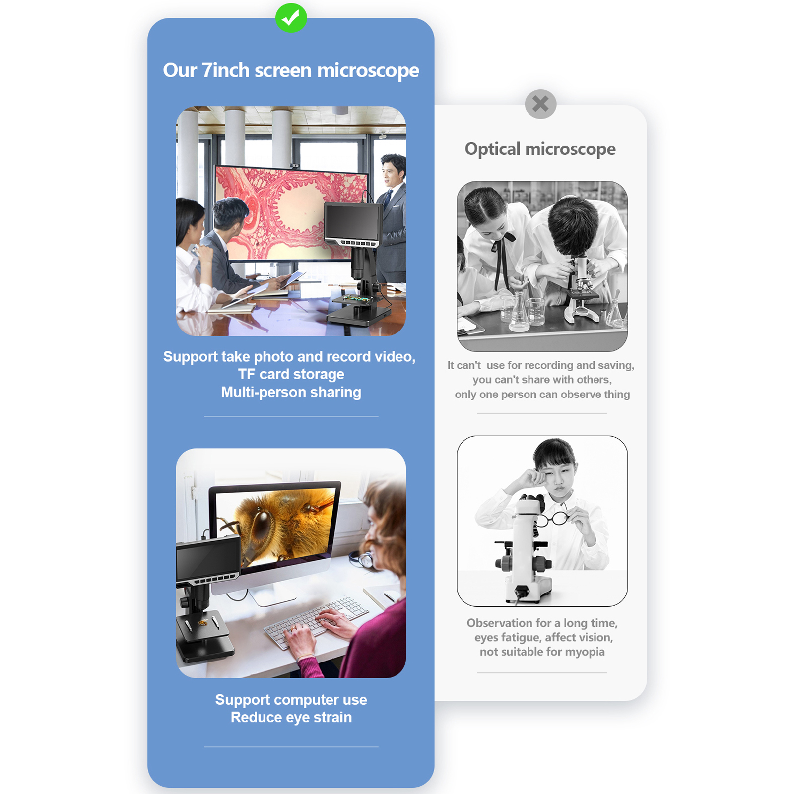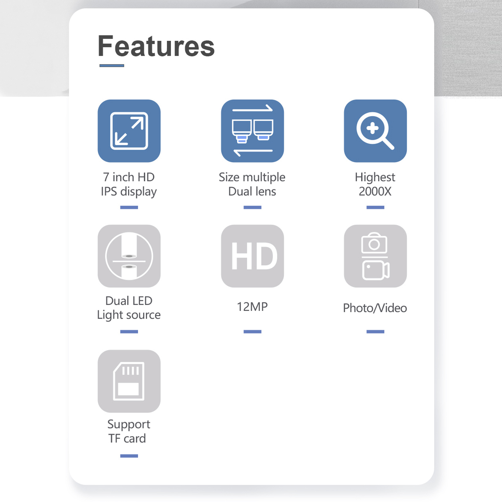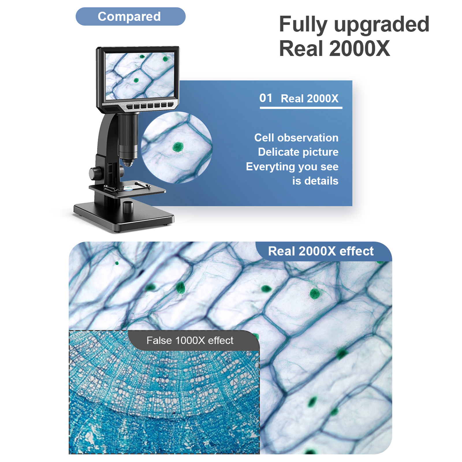 Inskam315 2000X 12MP Digital Microscope Magnifier 7" IPS Screen Two Lens For PCB Repair Jewelry