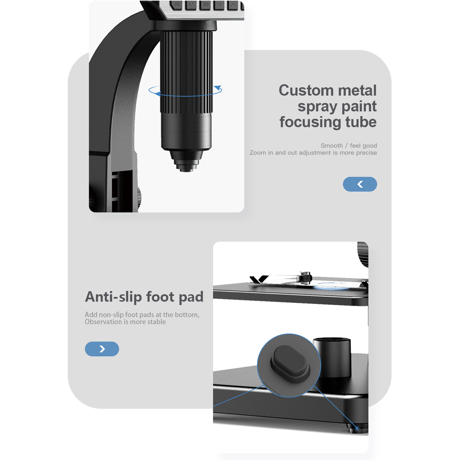 Inskam315 microscope is an upgrade to the traditional microscope. Equipped with 11 LED lights, there are two lenses with different magnifications, not only for daily observation, but also can for observing microorganisms. It supports multiple languages and multiple systems and has a wider range of applications.