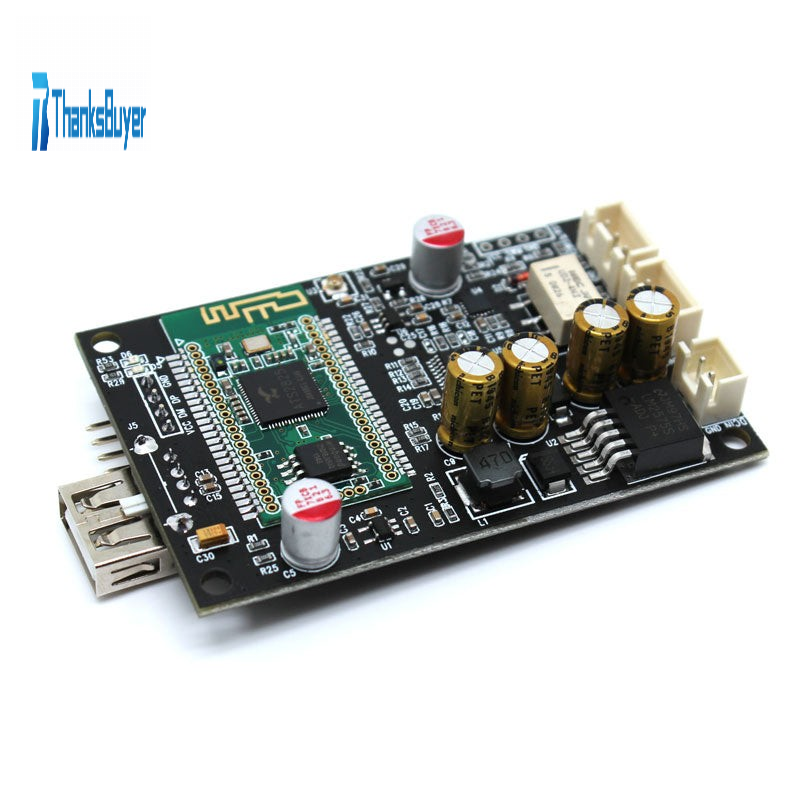 JC-SD2825 decoder board uses high-quality components. All SMD capacitors use original capacitors for Samsung, and plug-in audio dedicated capacitors for Nikon and solid capacitors for Foxconn (plug-in capacitors will be upgraded later without notice, subject to the actual product received). JC-SD2825 decoder board adds an AUX audio input, which can be switched with Bluetooth/U disk audio through a relay. This switching method is automatic switching, the default is AUX audio line input, and Bluetooth/U disk is preferred. In other words, when the Bluetooth/U disk is silent for 5 seconds, switch to a AUX audio line. When the Bluetooth/U disk has a sound, it will automatically switch to the Bluetooth/U disk mode. It is simple and convenient to use.