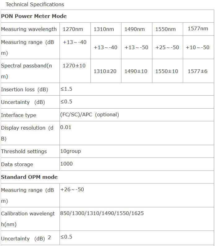 - Compatible with EPON, GPON and next generation 10G-EPON/XG-PON power measurement functions