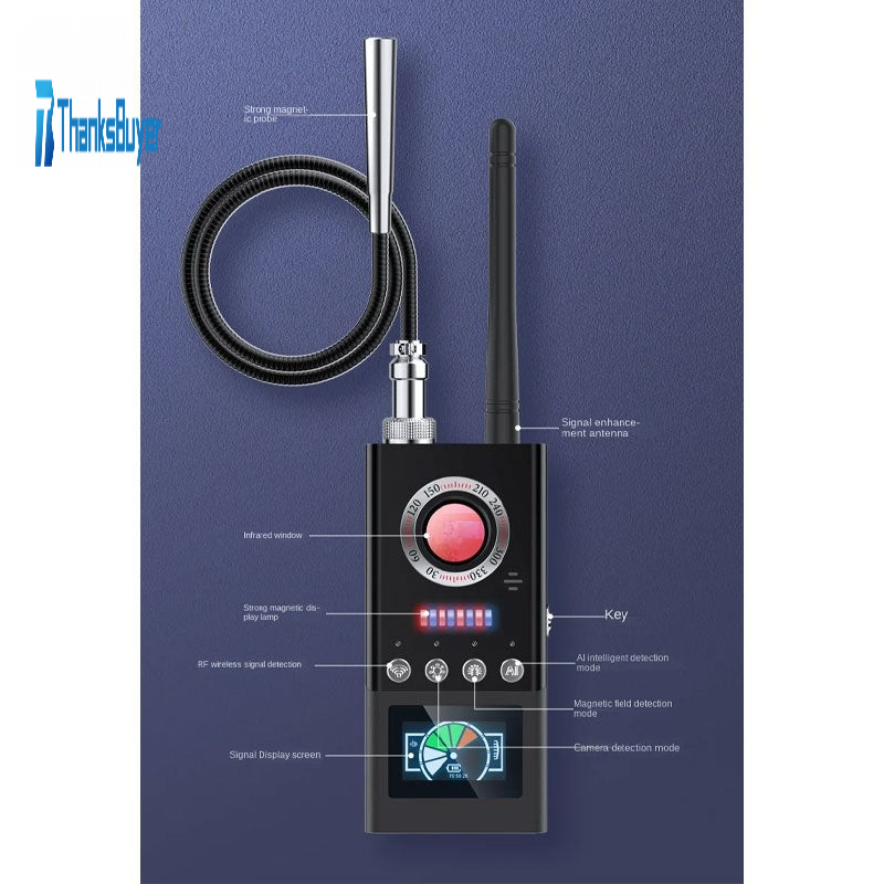 - This product is a small broadband wireless detection device that can detect whether private places such as bedrooms, fitting rooms, conference rooms, hotels, etc. have installed detectors, GPS locators, wireless pinhole cameras, and accurately detect wireless signal transmission equipment.