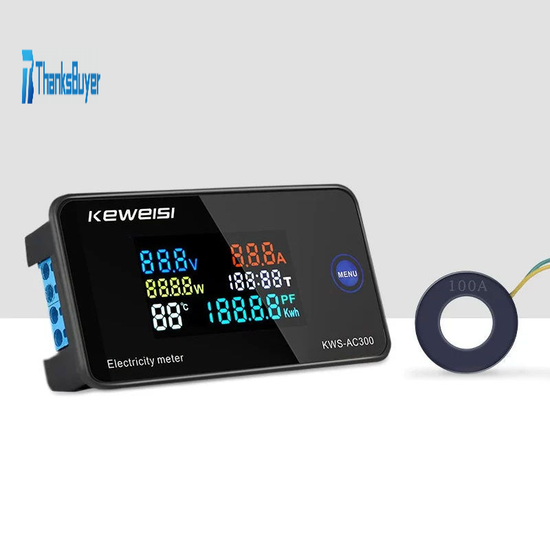 KEWEISI KWS-AC300-100A 6-in-1 Electricity Meter Electric Energy Meter Ammeter w/ 100A Solid Core CT