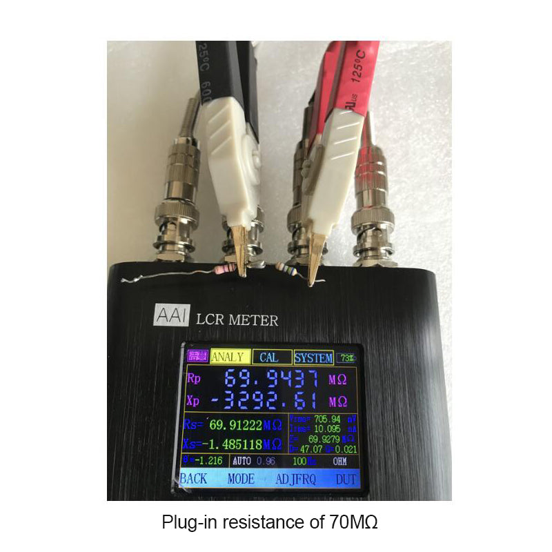 - The impedance of 300MΩ can be easily measured, and the actual measurement is 20GΩ. See the pictures below for details. The LCR bridges on the market basically cannot measure such a large impedance.