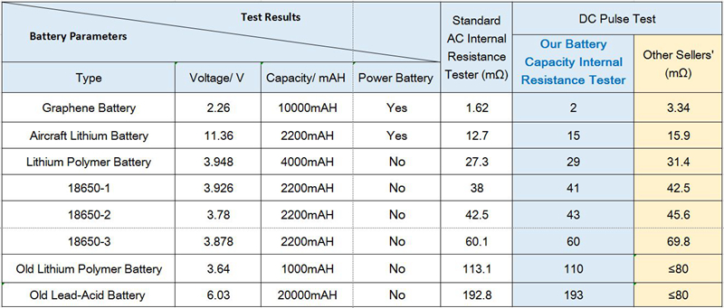 - Four-Wire Mode: For professional measurement, special fixture is needed to accurately test battery performance.