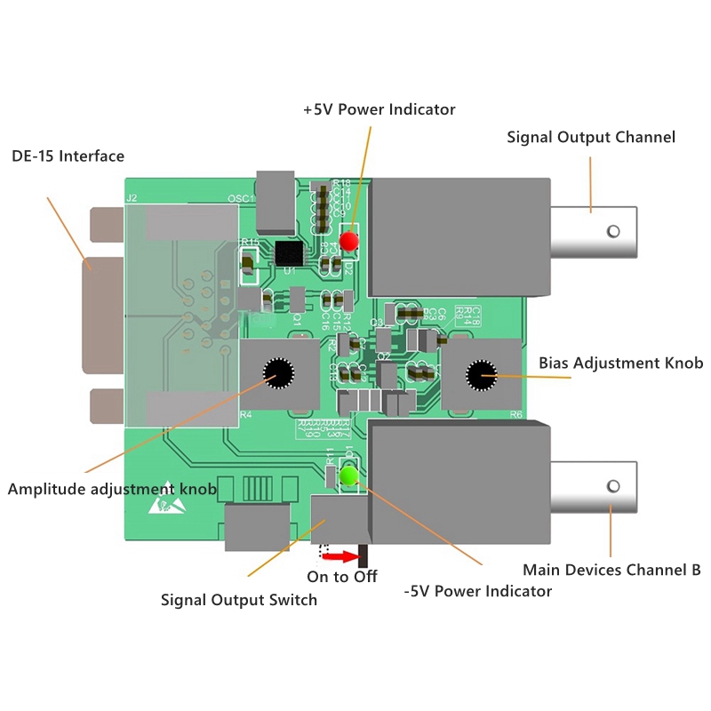 - Amplitude range: -4V ~ 4V (constant adjustable manual knob)