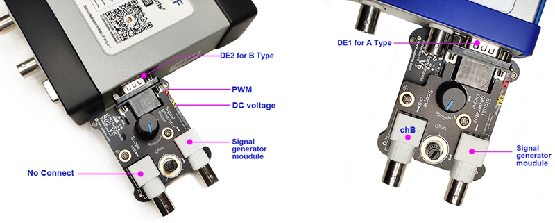 - This signal generator module is used in conjunction with the OSC oscilloscope. As long as you purchase an oscilloscope host that supports this module and plug it in, you can use both the oscilloscope and signal generator functions simultaneously. For details, please refer to the demonstration video on Bilibili: https://www.bilibili.com/video/BV1jJ411r7a9