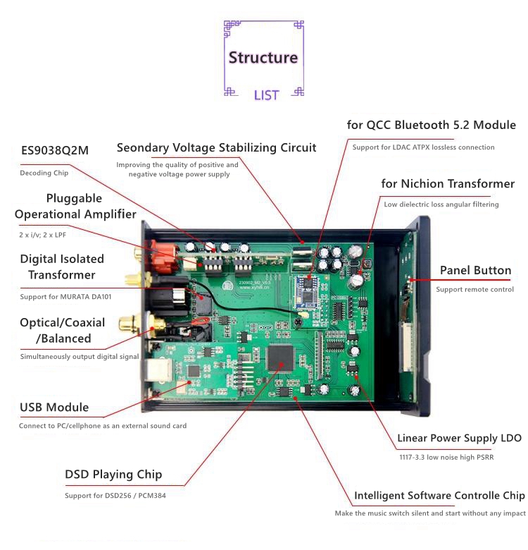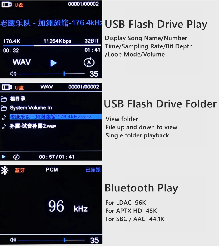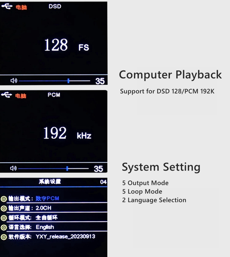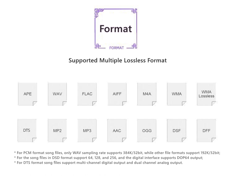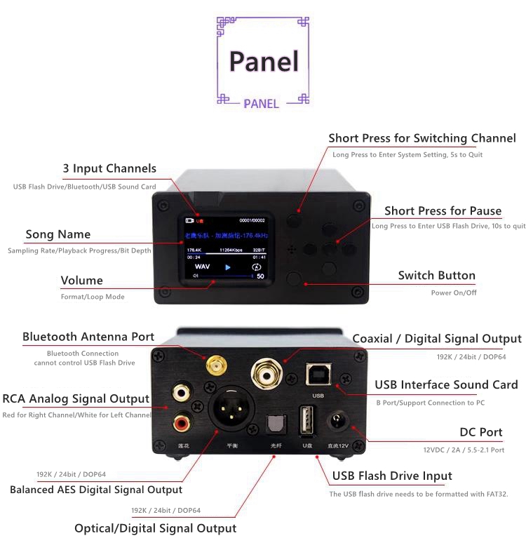 - USB flash drive parameter: DSD256 / PCM384 32bit