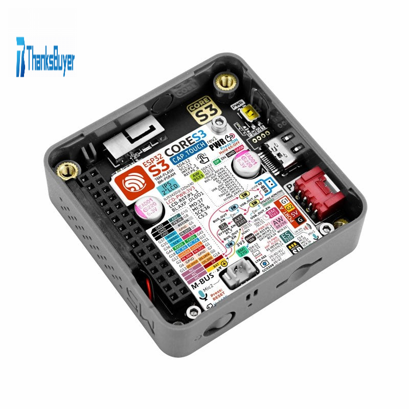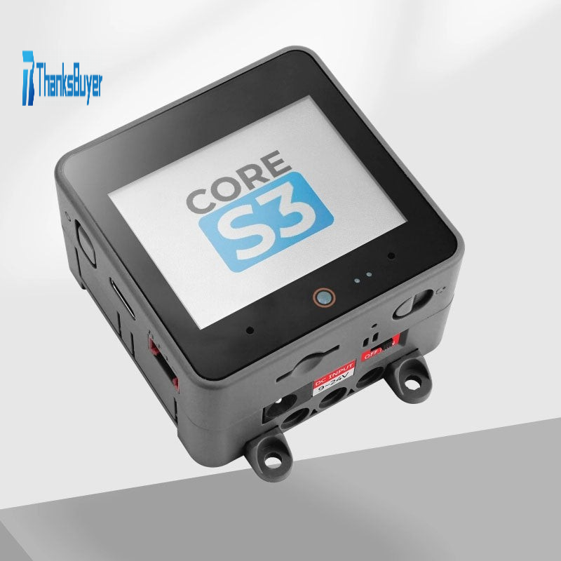 - Sound output on CoreS3 is optimized with the high-fidelity 16-bit I2S power amplifier chip AW88298, accompanied by a built-in 1W speaker for clear audio playback. For sound input, the kit incorporates the ES7210 audio decoding chip and dual-microphone input. The side of the device includes an independent power button and restart (RST) button, complemented by a self-built delay circuit. By long-pressing the reset button, users can easily enter the program download mode. The CoreS3 kit comes with the DinBase Base, providing convenient options for Din rail, wall, and screw fixing. It can be powered by an external DC 12V (supports 9~24V) or an internal 500mAh lithium battery. The DinBase also offers multiple proto locations for users to customize and expand their projects. CoreS3 is an ideal choice for IoT development, various DIY project development, smart home control systems, and industrial automation control systems.