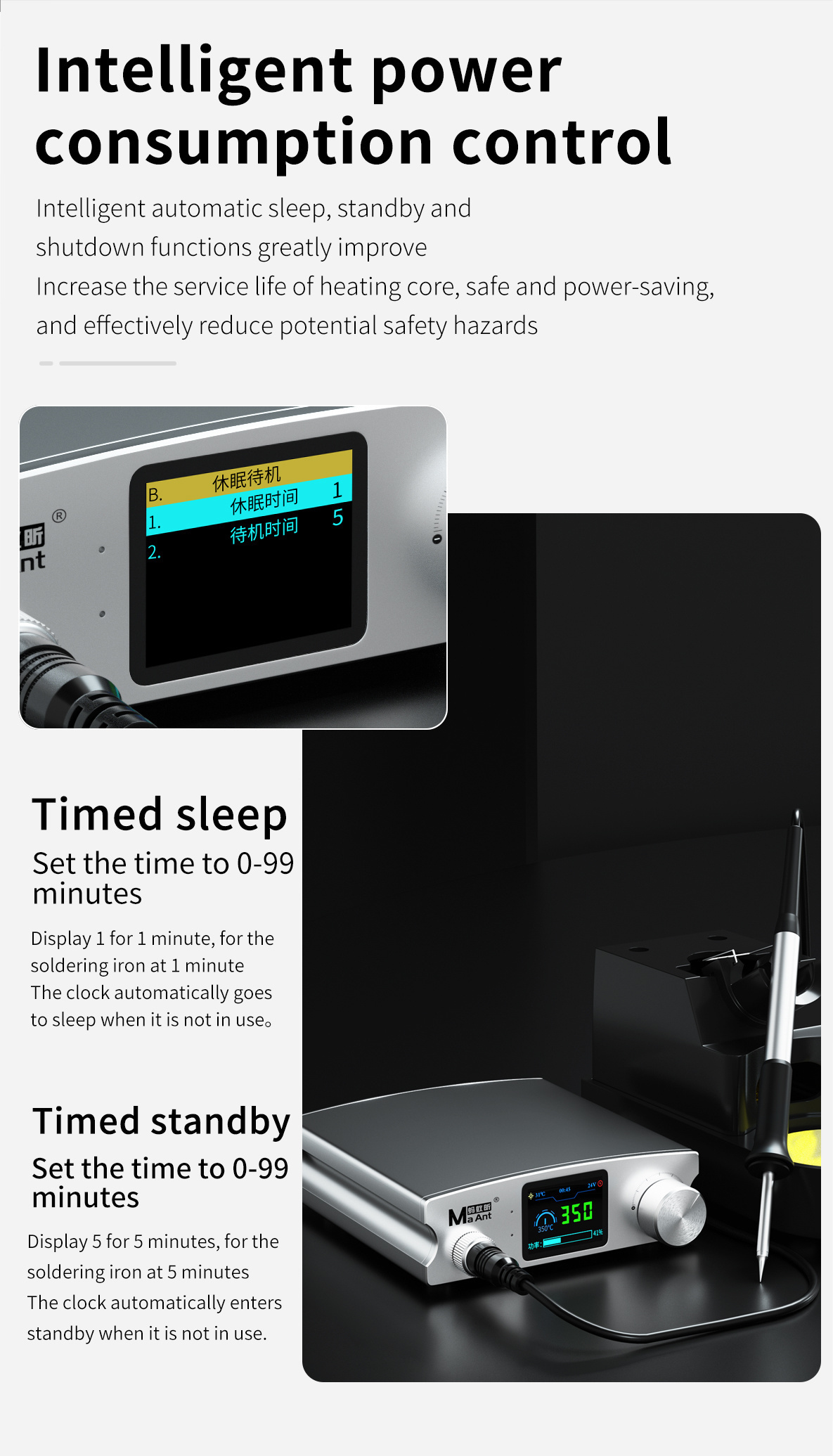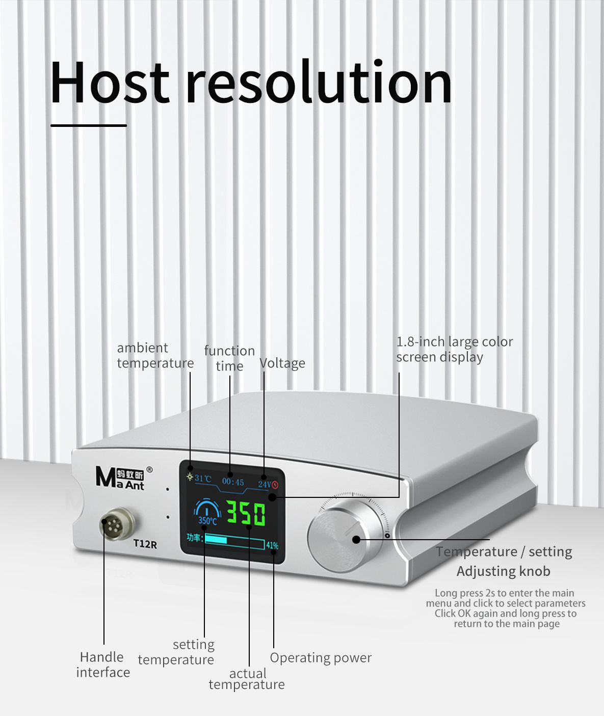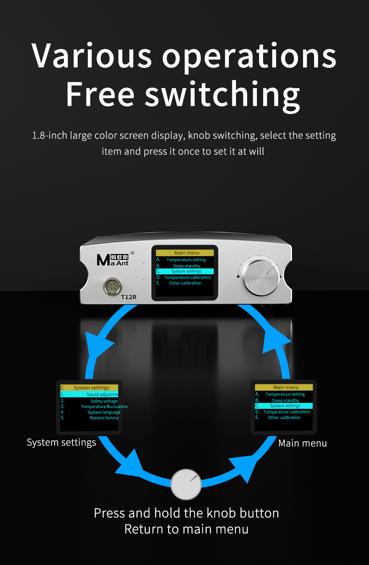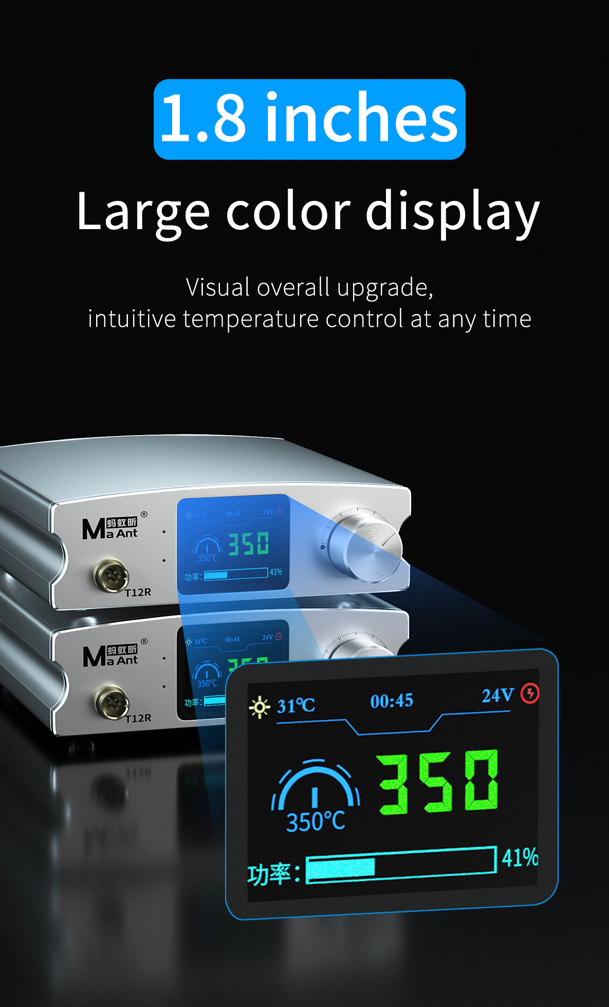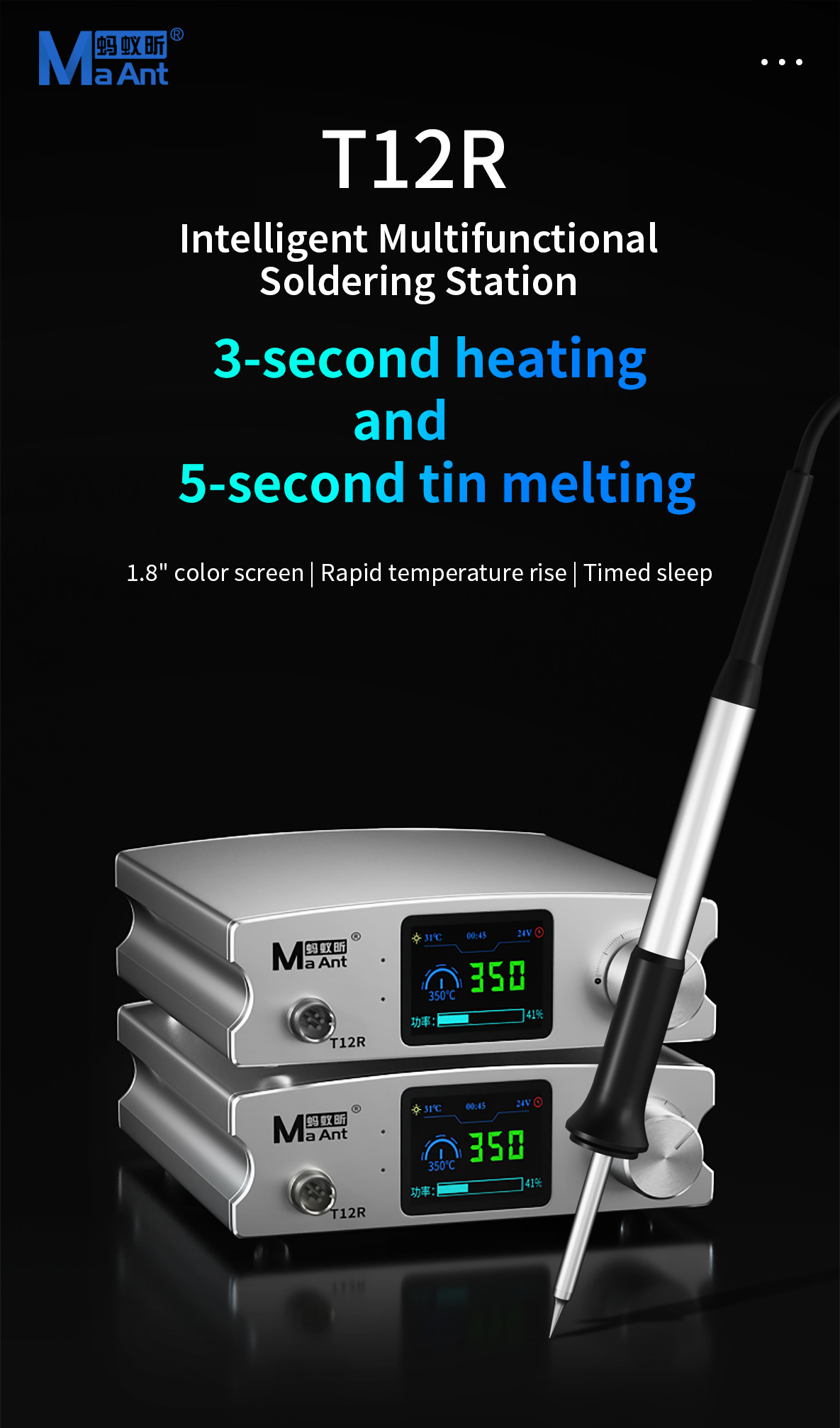 MaAnt T12R 220V 120W Intelligent Soldering Station Timed Sleep 1.8" Screen for Phone PC Repair