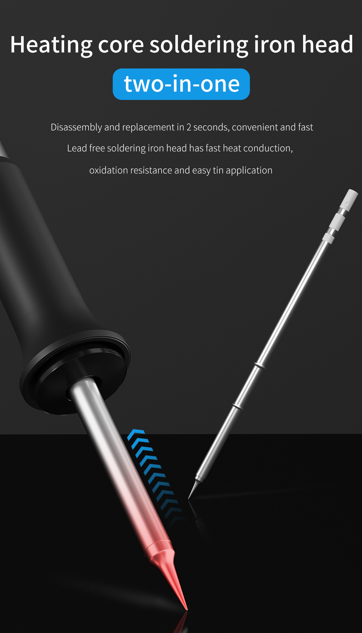 - It takes 2 seconds to change the heating core of the soldering iron; lead-free soldering iron tip heats up at a fast speed