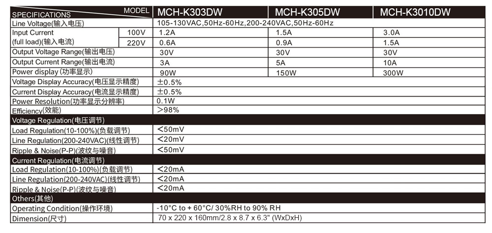 MCH-K303DW 30V 3A 90W Mini DC Power Supply Adjustable Switching Power Supply w/ Power Display Screen