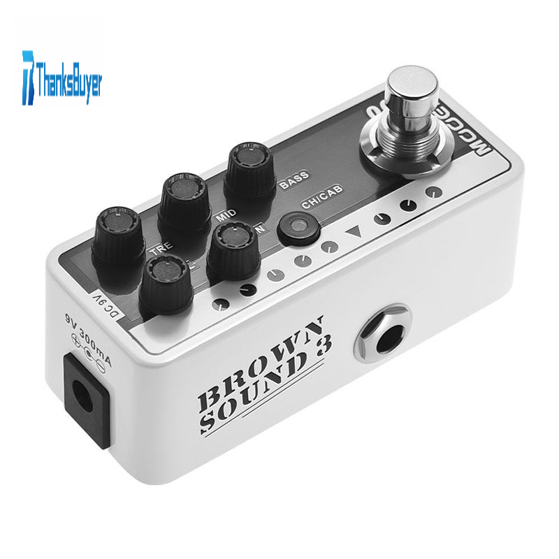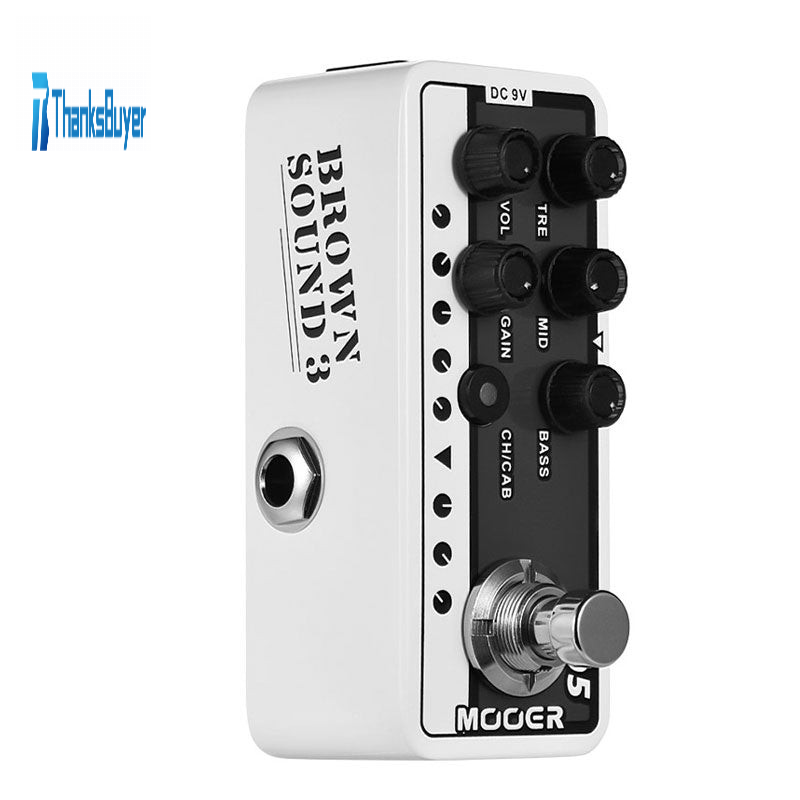 - British MOOER 005 Brown Sound 3 Effects Digital Preamp pedal with dual channels A/B.
