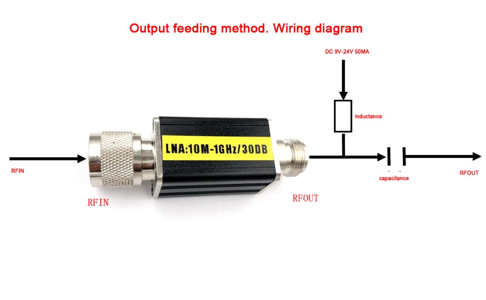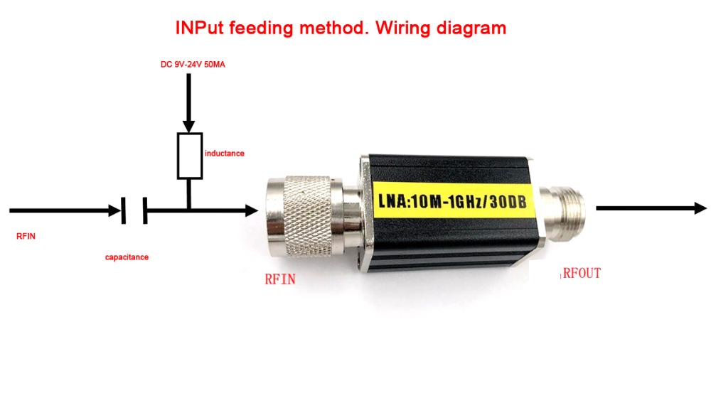 N-type with Feed Amplifier LNA 10M-1GHZ 30DB Low Noise RF Power Amplifier For HAM Radio FM HF VHF