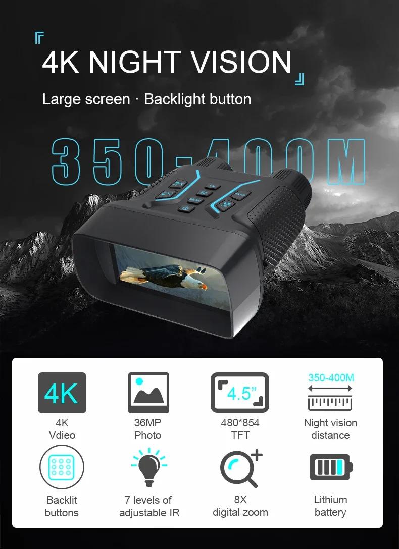 NV2183 4K Night Vision Goggle 400m 8X HD Digital Binocular Outdoor IR Night Vision Telescope with 4.5-inch TFT Screen