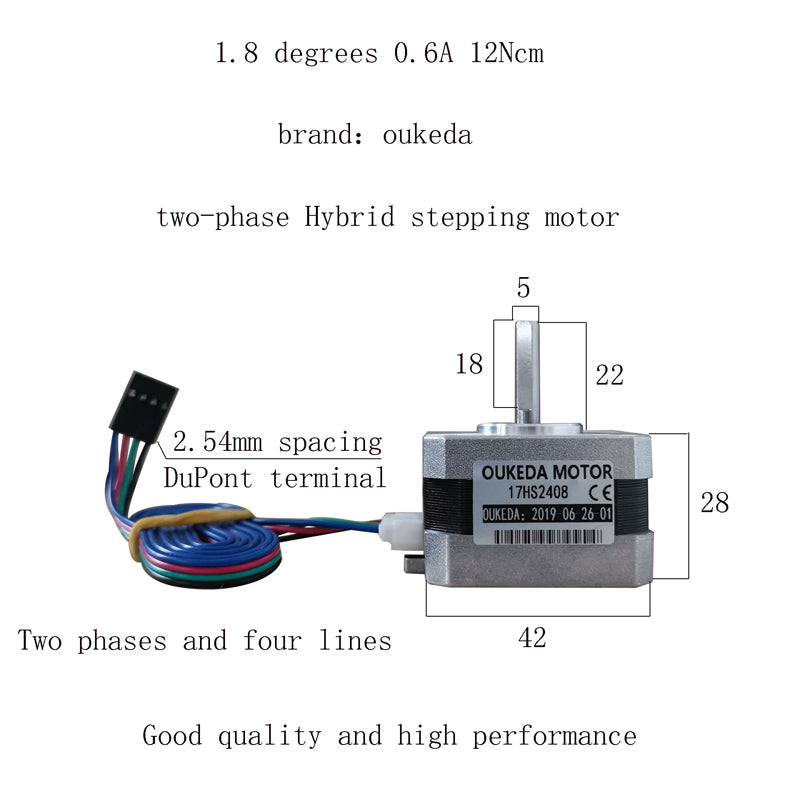 OUKEDA MOTOR 17HS2408 3D Printer Stepper Motor Two-Phase Hybrid Stepper Motor NEMA 17 Stepping Motor