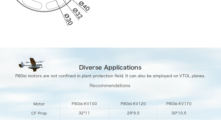 P80III Pin 100KV Brushless Motor Dustproof Waterproof for Agriculture UAV Power