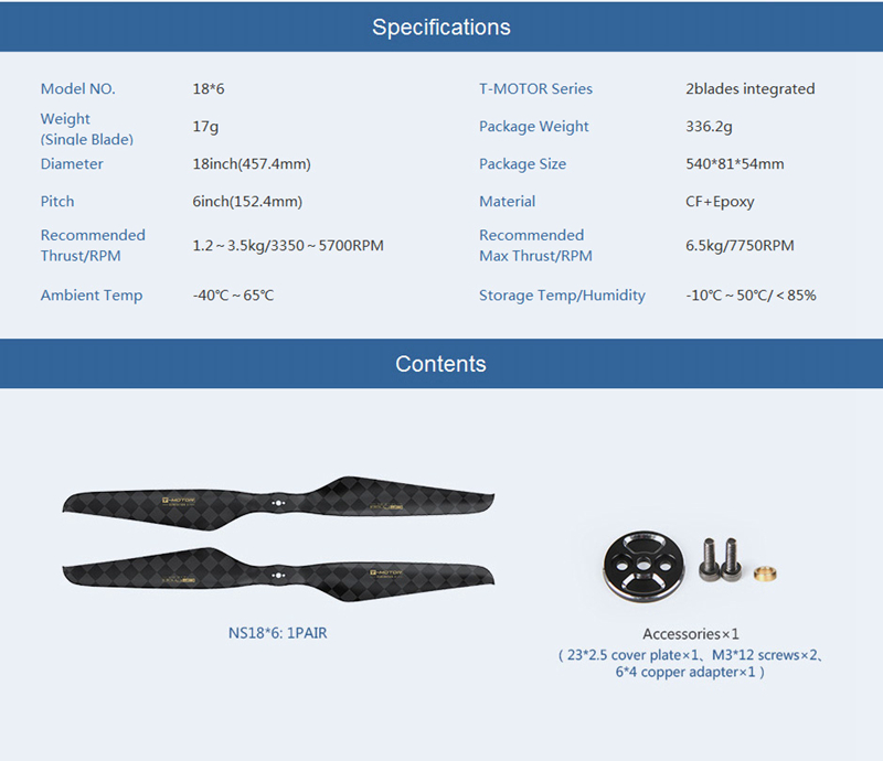 Pair of T-Motor Carbon Fiber Propeller 18x6" Ultra Light Multirotor RC Propeller CW CCW (NS18x6)