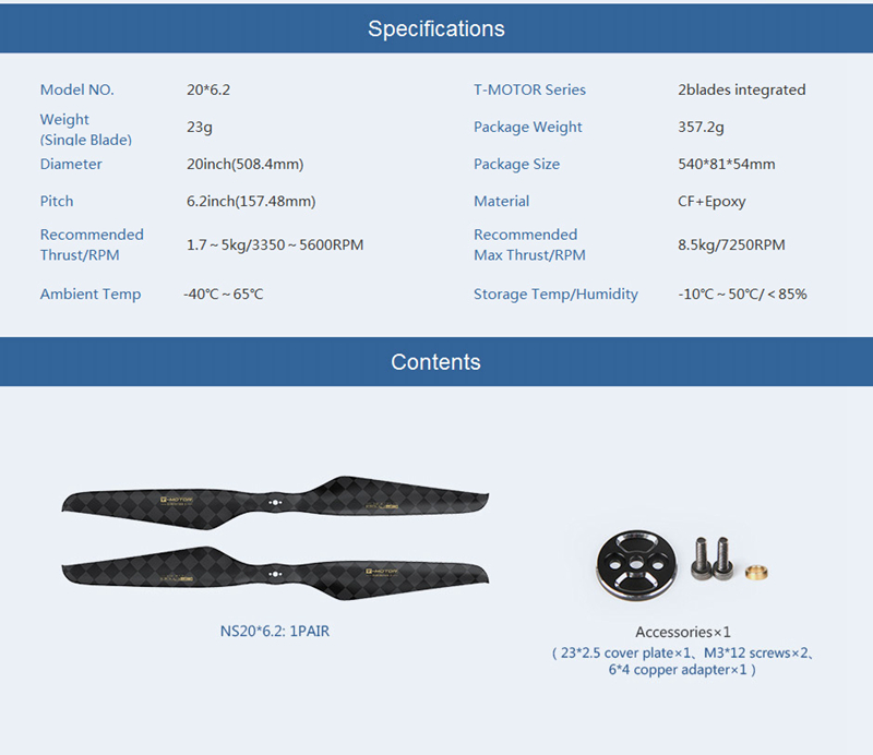 Pair of T-Motor Carbon Fiber Propeller 20x6.2" Ultra Light Multirotor RC Propeller CW CCW (NS20x6.2)