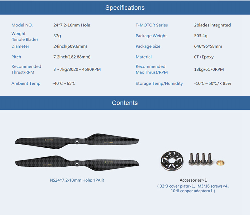 Pair of T-Motor Carbon Fiber Propeller 24x7.2" Ultra Light Multirotor RC Propeller CW CCW (NS24x7.2)