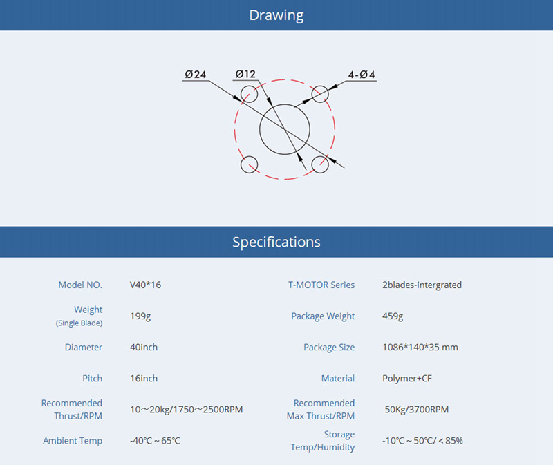 Pair of T-Motor Carbon Fiber Propeller 40x16" RC Airplane Propeller CC CCW For VTOL (V40x16)