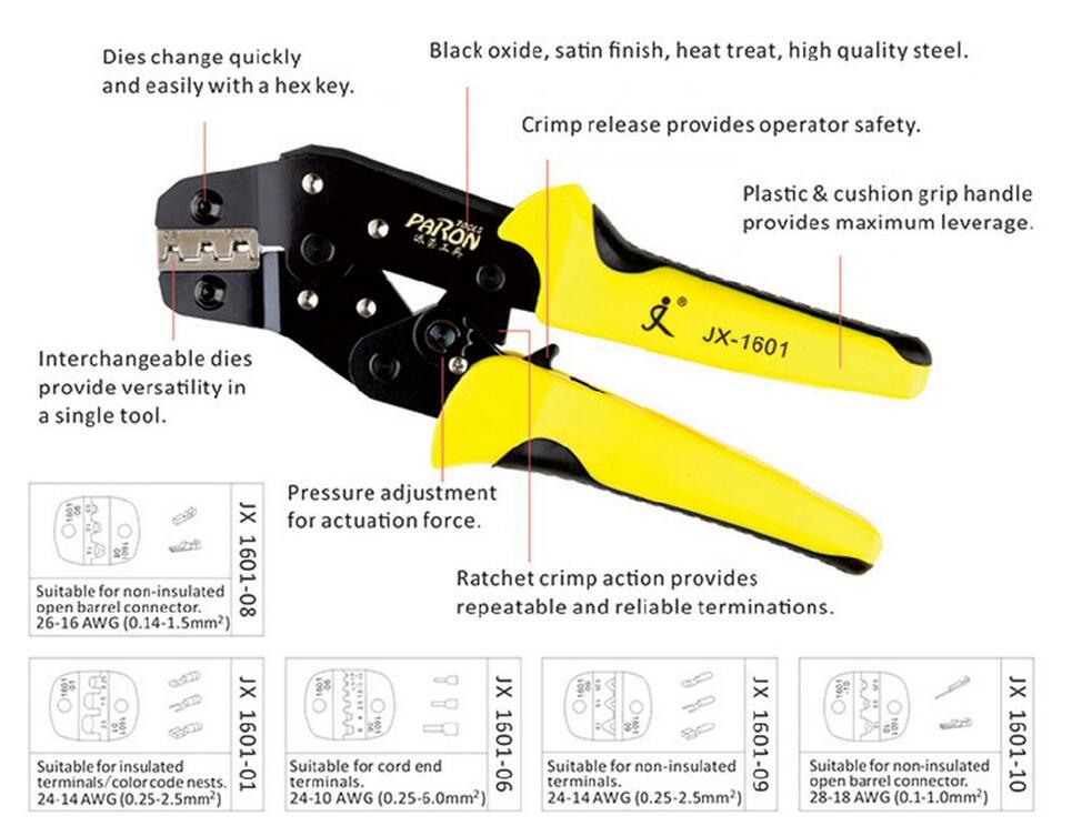 PARON 4 In 1 Wire Crimper Tool Set Ratchet Terminals Crimping Pliers JX-D4301 with Wire Stripper