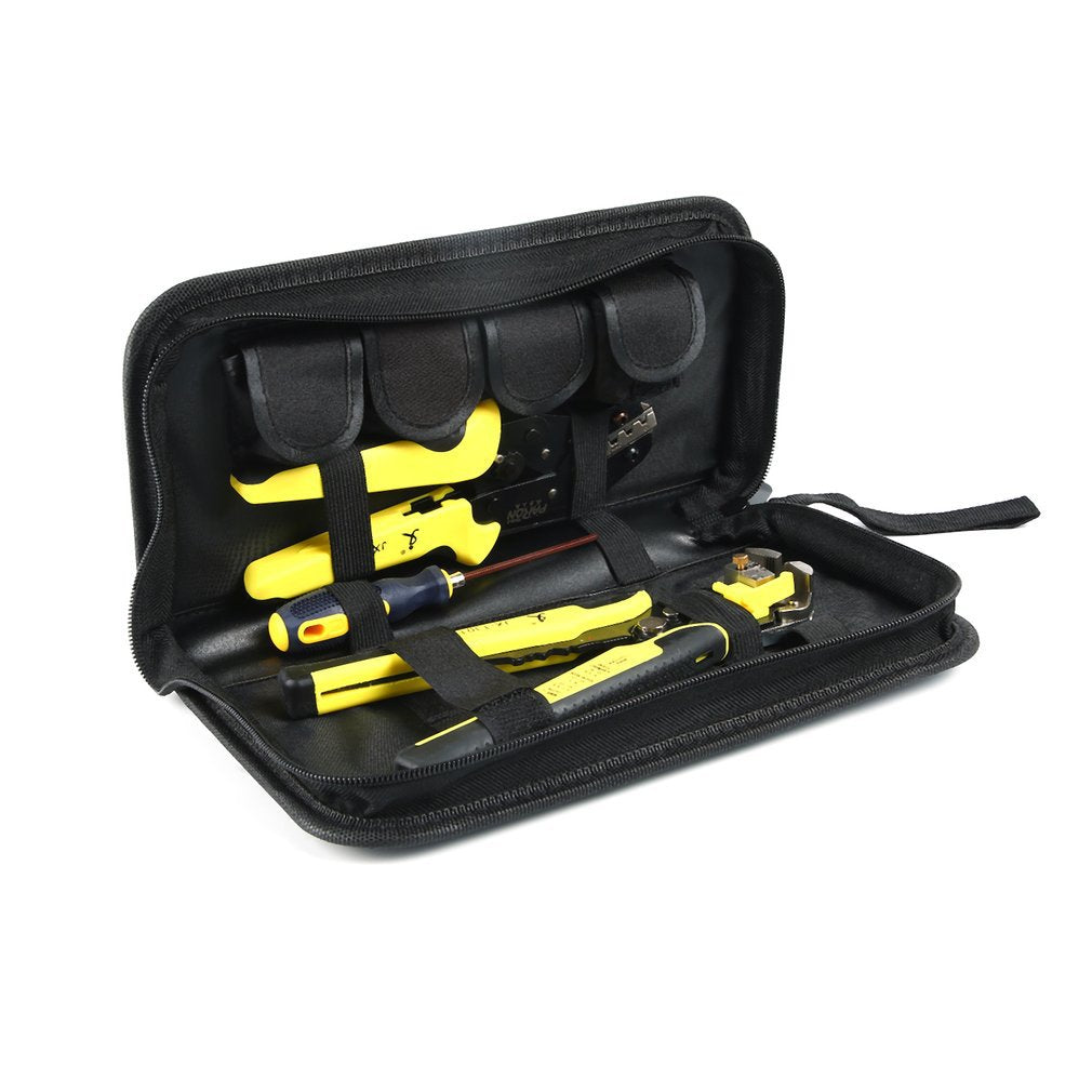 The 4 in 1 crimping tool set (with wire stripping pliers) (JX-D4301) is made of imported manganese steel, with high durability, long service life and easy to use. The clamp head is maded by high-precision powder metallurgy, featuring high accuracy. The tool kit can be used to crimp terminals of different specifications and models, and is equipped with multifunctional automatic wire strippers and a dual-purpose screwdriver for changing the die. It can cut various wires and copper wires, which is a set of highly practical and professional crimping tools.