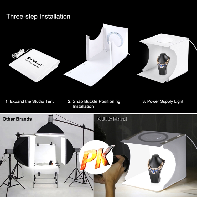 4. Portable folding structure design, more convenient to install and carry, built-in led light, providing average light and prevents shadows and reflections in your photos.