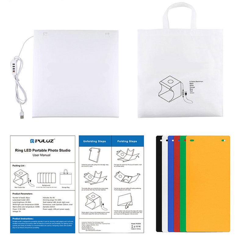 5. With 6 backgrounds, and build-in light and USB cable, 3 colors temperature switch.