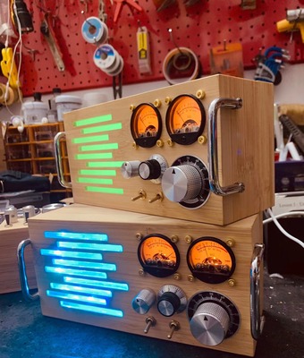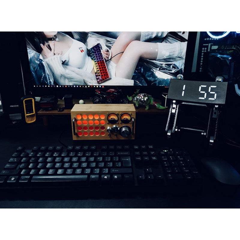 - It has a pickup microphone inside; the sensitivity of the meter needle can be adjusted. If there is a certain volume of sound around, its vu meter will jump. Now the metal rotatable button is changed to 2 as an ornament. The large metal knob is a sensitive light, and its color can be controlled by the Bluetooth app. It supports multiple color adjustments